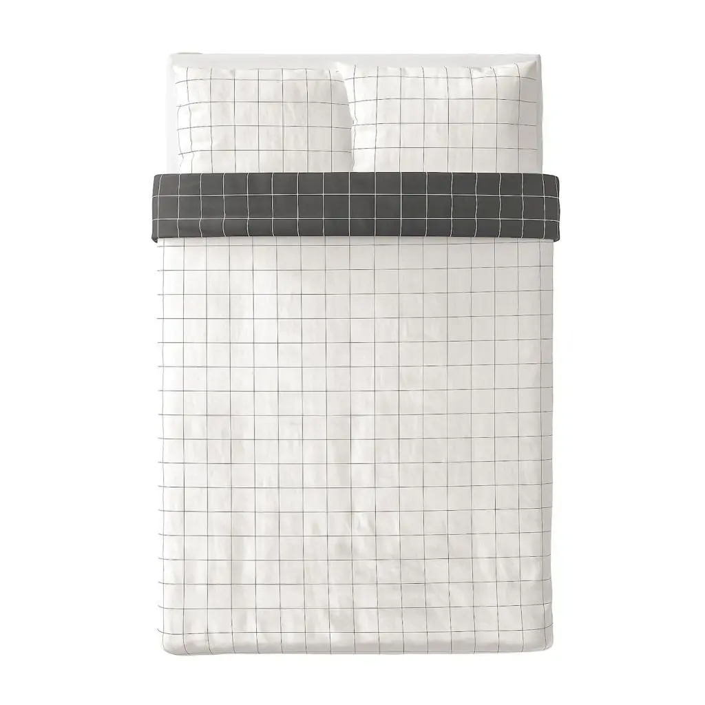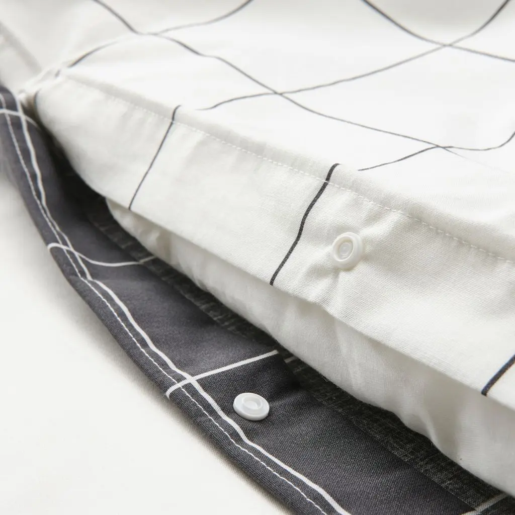 Комплект постельного белья с орнаментом в клетку. Ткань изготовлена из мягкого хлопка — прочного натурального материала, который с каждой стиркой становится только мягче.Ткань из смеси хлопка и вискозы обеспечивает испарение влаги и способствует поддержанию ровной комфортной температуры для полноценного сна.Пододеяльник застегивается на пластиковые кнопки по нижнему краю.Наволочка с клапаном.Количество нитей на кв. дюйм: 152.Чем выше количество нитей на квадратный дюйм, тем прочнее и плотнее ткань.Дизайнер