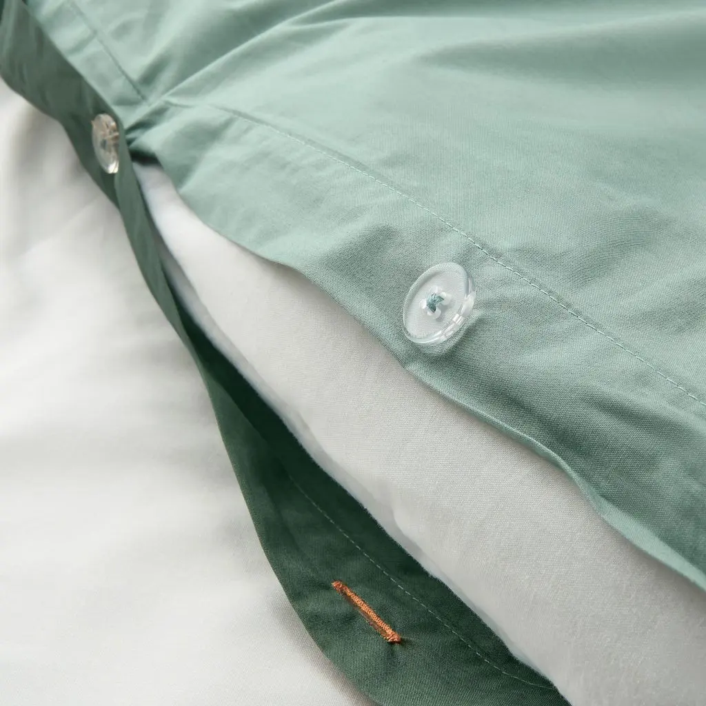 Пододеяльник застегивается на прозрачные пуговицы по нижнему краю.