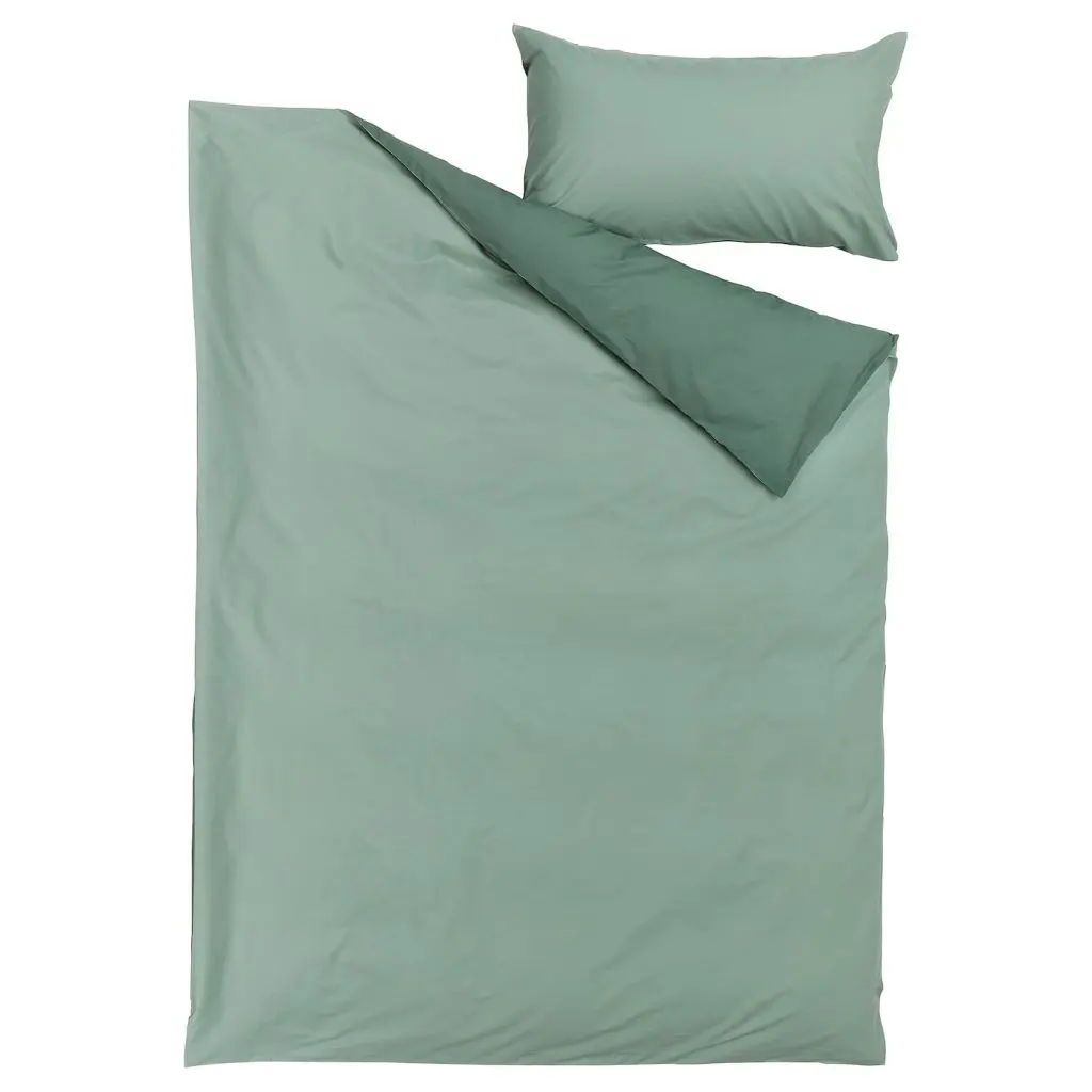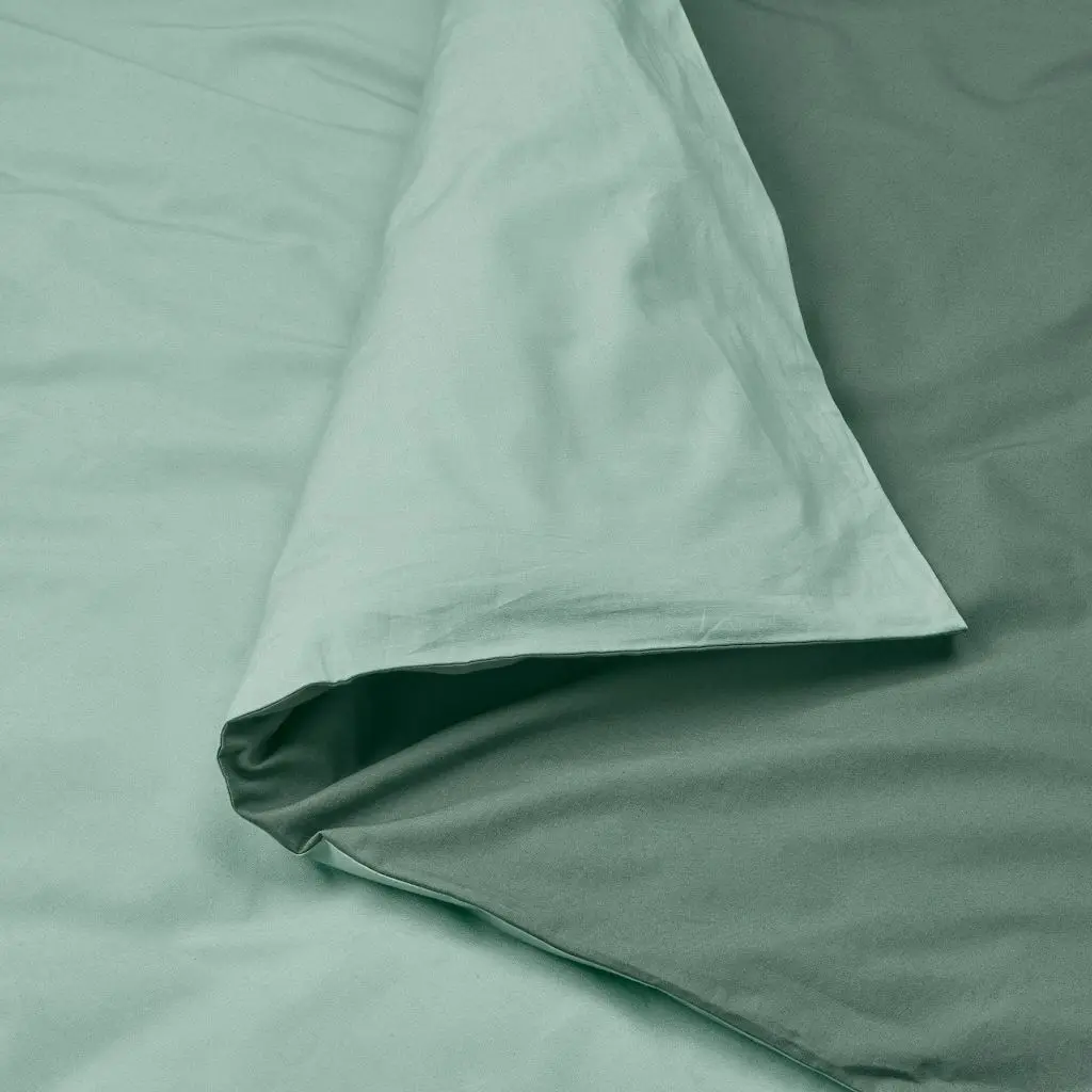 На одной стороне светлые оттенки, а на другой — темные. Плотная перкаль с приятным легким блеском из смеси хлопка и вискозы превосходно пропускает воздух и впитывает влагу, обеспечивая комфортный сон.