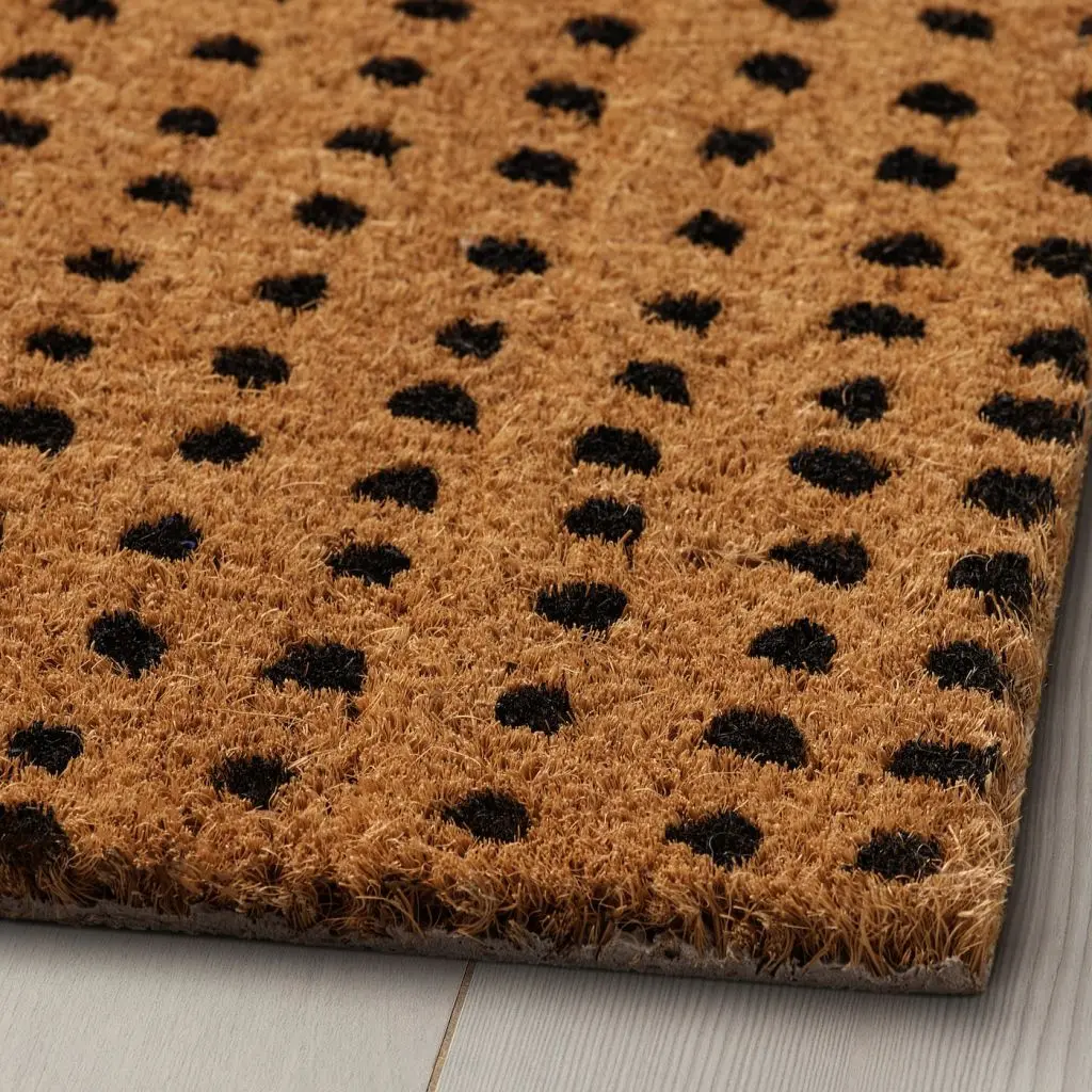 Такой коврик станет выразительным акцентом в интерьере вашей прихожей.Кокосовое волокно — прочный и износостойкий материал, который отлично подходит для придверных ковриков.Благодаря изнанке из специального материала ковер не скользит.Рекомендуется использовать только в помещении.Дизайнер