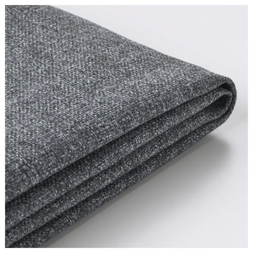 Чехол ГУННАРЕД изготовлен из полиэстерной ткани. Эта прочная двухцветная меланжевая ткань на ощупь похожа на шерстяную.