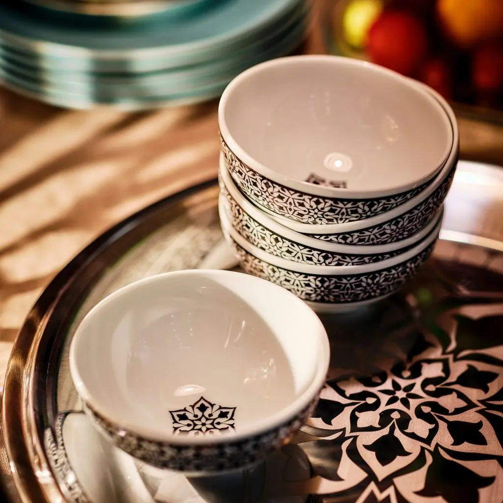Эти черно-белые миски из прочного полевошпатного фарфора сделают особенной каждую трапезу. Украшены традиционным марокканским орнаментом, как и весь фарфор серии ХЕМБЬЮДЕН.