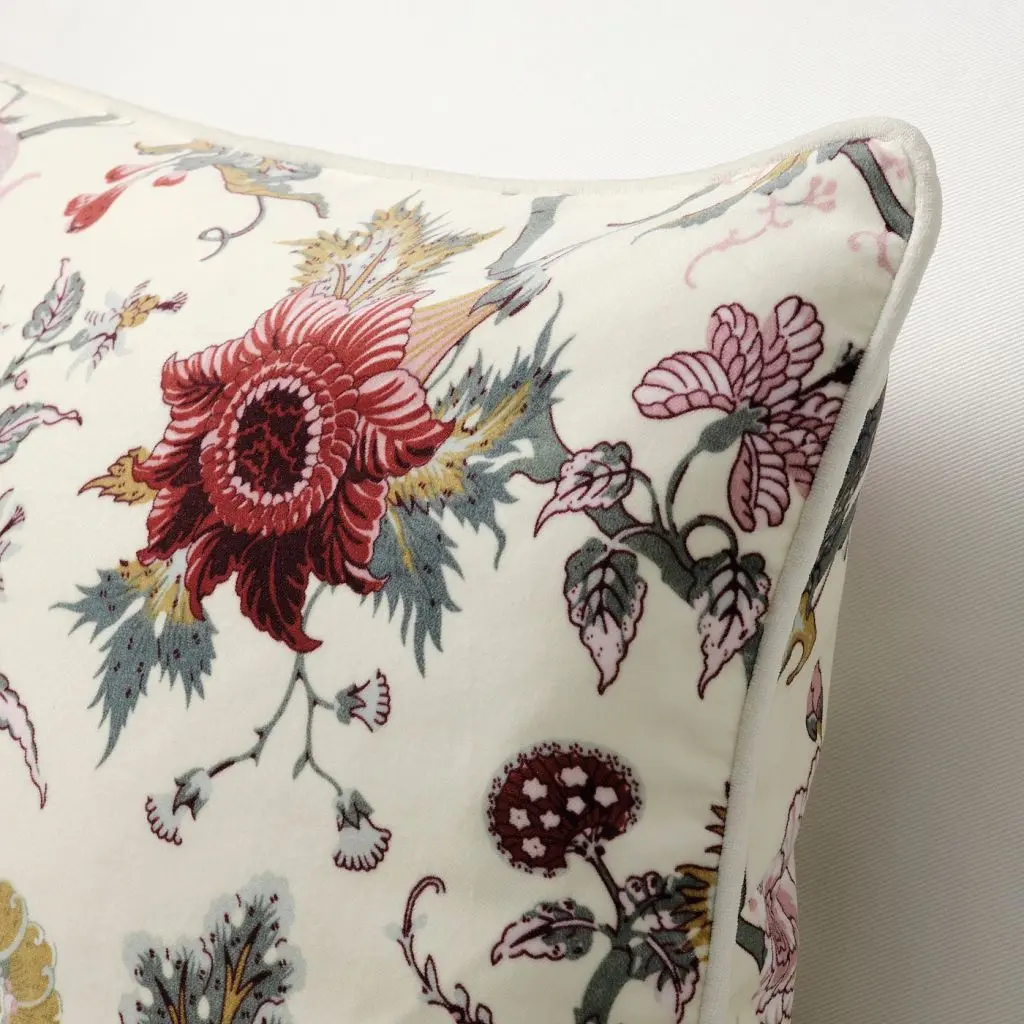Чехол на подушку из бархатистой хлопковой ткани с цветочным орнаментом на светлом фоне. Прекрасно сочетается с предметами интерьера разных цветов и дополняет ткань НЭССЕЛЬКЛОККА с таким же орнаментом.