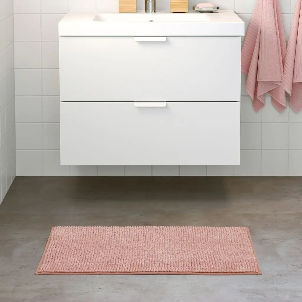 На мягкую поверхность приятно наступать, выходя из душа или ванны. Легко комбинировать с другими предметами и содержать в чистоте: можно стирать в машине. Полиэстер для изготовления этого товара получен из переработанного сырья (пластиковых бутылок).