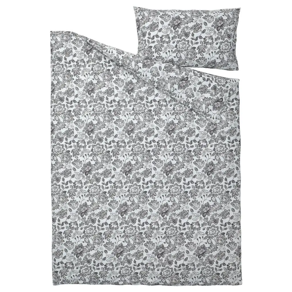 Слегка размытый цветочный орнамент в серых тонах смотрится очень живо и объемно. Смесовая ткань из хлопка и вискозы способствует поддержанию комфортного микроклимата в постели в течение всей ночи.