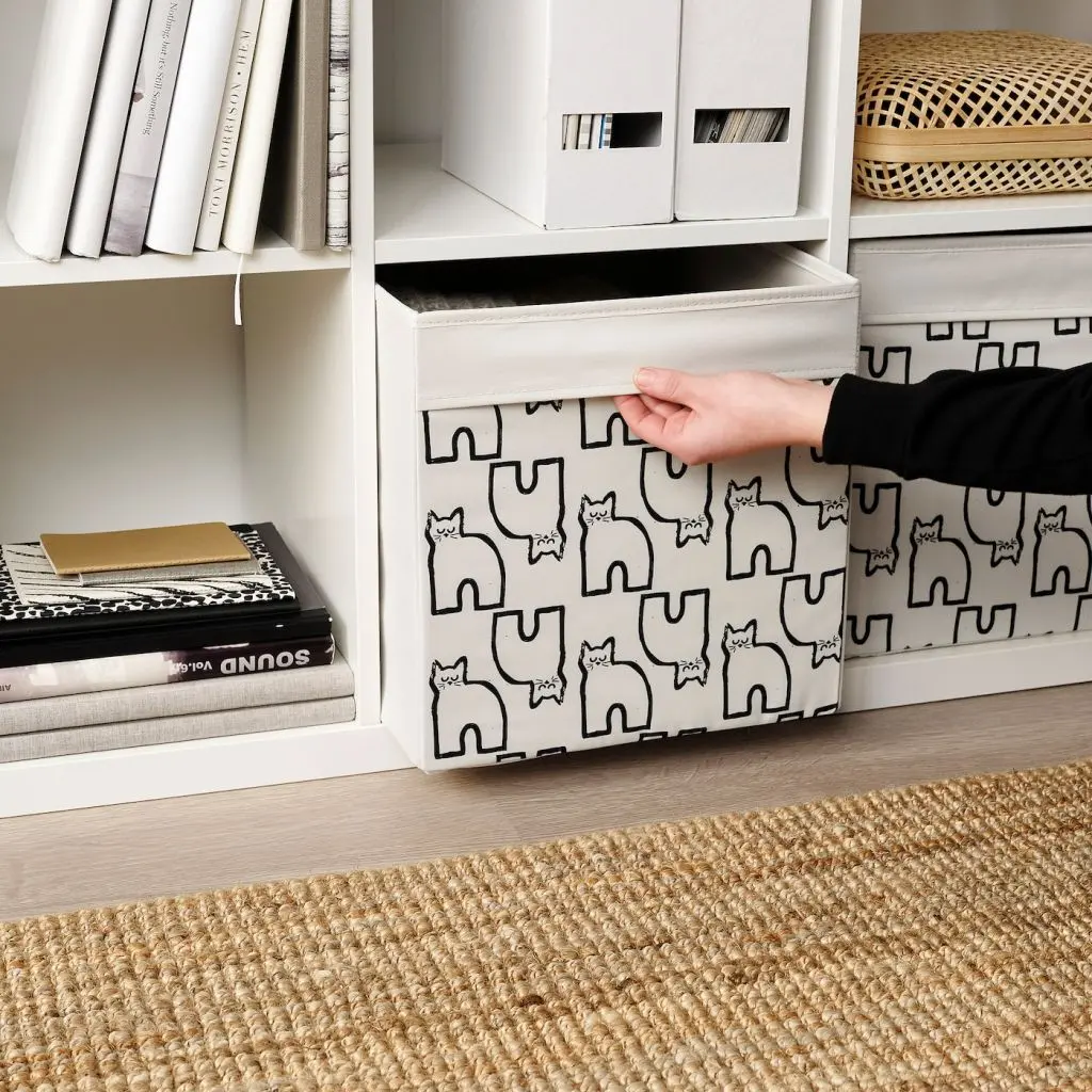 Эта коробка, обтянутая бархатом из переработанного полиэстера, идеально подходит для стеллажей КАЛЛАКС. Ее можно поставить однотонной стороной или стороной с орнаментом или комбинировать, если вы используете сразу несколько коробок.