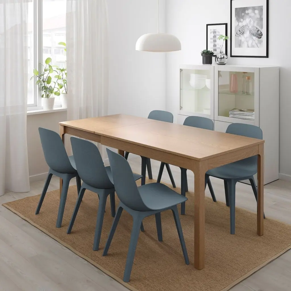 Каждый стол уникален – благодаря естественному рисунку натуральной древесины и вариативности ее оттенков.1 человек может легко и быстро разложить стол перед приходом гостей.Когда стол не разложен, на поверхности столешницы нет никаких швов.Вкладную доску удобно хранить под столешницей.Ножки всегда находятся по углам стола, даже когда он раздвинут, что обеспечивает достаточно места для стульев.Можно дополнить стульями и скамьями этой серии или другими стульями из ассортимента ИКЕА.Для сборки не требуются инструменты. Вы просто соединяете компоненты до щелчка с помощью простого механизма под сиденьем.На 4-6 человек.Данный стул протестирован и одобрен для бытового использования и соответствует требованиям к безопасности, долговечности и устойчивости, установленным стандартами EN 12520 и EN 1022.1 вкладная доска прилагается.Для обеспечения максимального качества при необходимости подтягивайте шурупы.Дизайнер