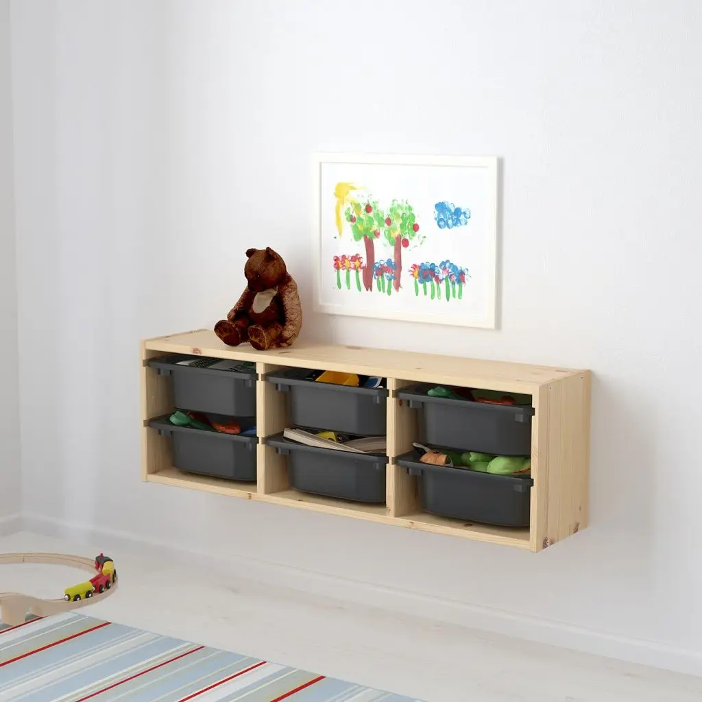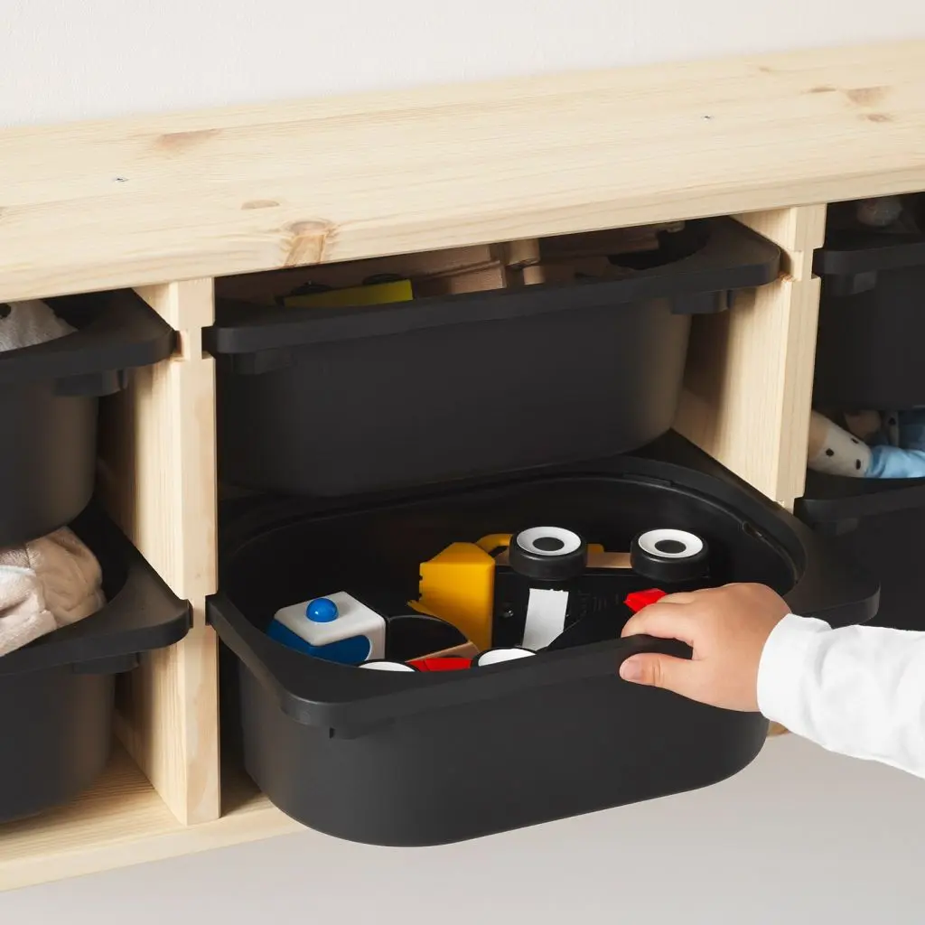 Детям нужно пространство для игр и место для хранения игрушек. Серия деревянной мебели для хранения ТРУФАСТ с легкими пластиковыми контейнерами, которые ребенок сможет легко выдвигать, переносить и убирать обратно.