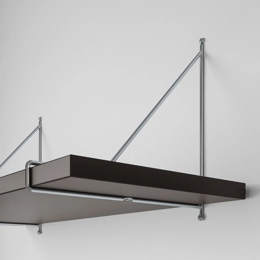 У этой полки есть два варианта окантовки фронтального края — гладкий и профилированный. Выберите тот, который больше подойдет для вашего интерьера.Консоли можно соединять, если вам нужно создать комбинацию из нескольких полок.Для соединения двух консолей нужен всего один шуруп.Консоли можно установить под полкой или над ней.Полка длиной 120 см при правильном креплении к стене выдерживает нагрузку макс. 20 кг при опоре на 3 консоли и нагрузку макс. 10 кг при опоре на 2 консоли.Макс. нагрузка — это вес, который может выдержать полка, без опасности отклонения от горизонтального положения. Распределяйте нагрузку равномерно.Шурупы для крепления полки к консоли прилагаются.Шурупы для фиксации к стене не прилагаются.Для различных материалов стен требуются различные крепежные средства. Используйте крепежные средства, подходящие для материала стен в вашем доме.Если Вы не уверены, какой тип креплений использовать, обратитесь в специализированный магазин.Дизайнер