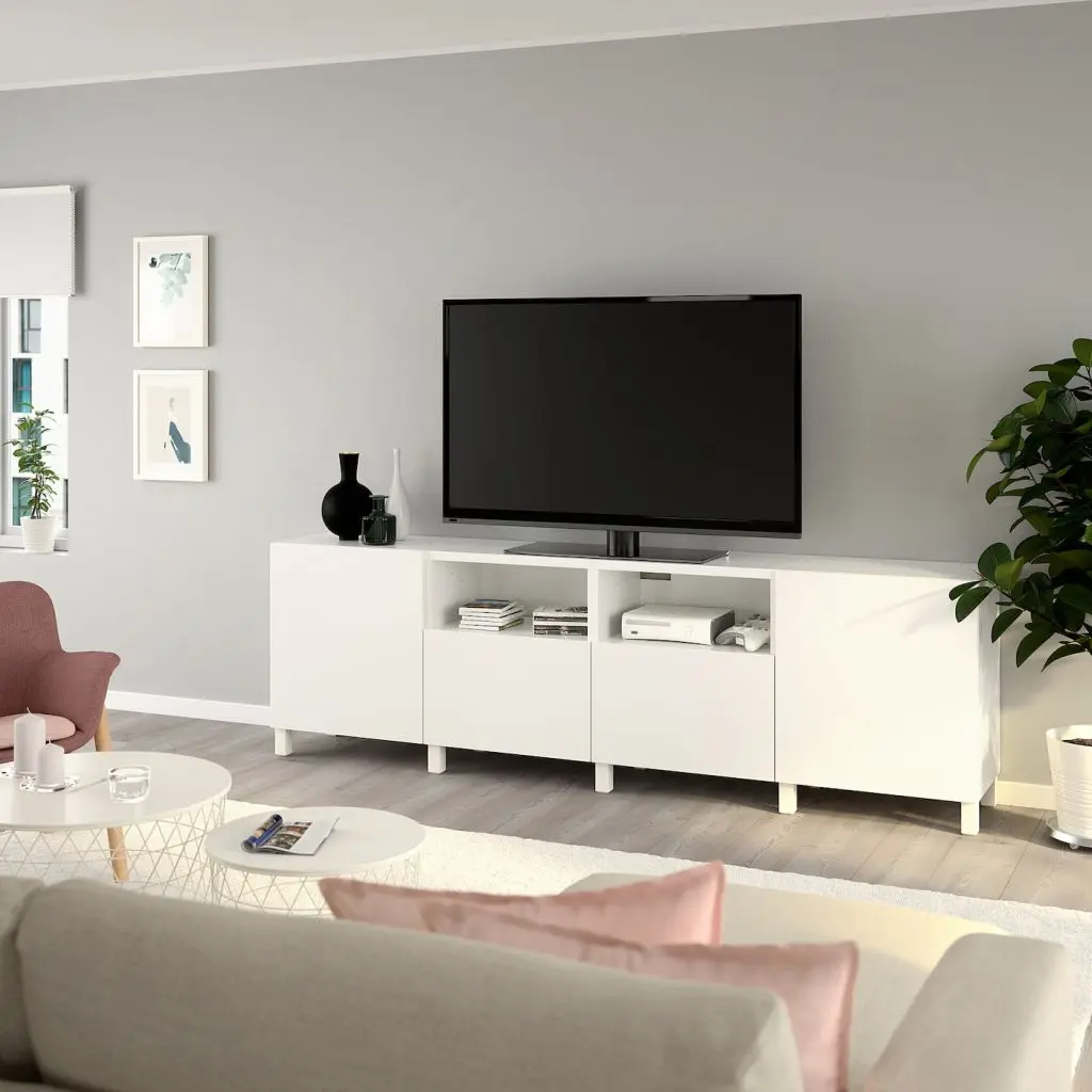 Благодаря интегрированному нажимному механизму ящики открываются легким нажатием.Благодаря нескольким отверстиям на задней панели тумбы под ТВ провода от телевизора и других устройств всегда будут под рукой, но не на виду.Два ящика обеспечат порядок в хранении пультов, игровых приставок и других аксессуаров для ТВ.Ножки придают комбинации БЕСТО более легкий вид, поднимая модули на полом. Кроме того, это упрощает уборку.Специальное отверстие в верхней панели обеспечит удобное и компактное размещение проводов.Эту мебель необходимо крепить к стене с помощью прилагаемого стенного крепежа.Макс. нагрузка на верхнюю панель этой тумбы под ТВ: 50 кг.Для разных стен требуются различные крепежные приспособления. Подберите подходящие для ваших стен шурупы, дюбели, саморезы и т. п. (не прилагаются).Внутренние элементы для организации хранения в модулях БЕСТО продаются отдельно.Если вы выберете функцию плавного закрывания, рекомендуем дополнить фасады ручками, чтобы открывать ящики/шкафы было удобнее.Дизайнер
