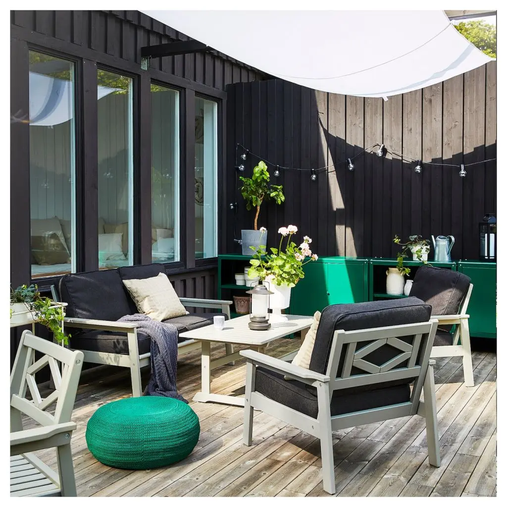 Два кресла можно поставить одно на другое. Для этого кресло, которое будет стоять сверху, нужно перевернуть, чтобы его подлокотники опирались на подлокотники нижнего кресла.Пластиковые ножки защищают мебель от соприкосновения с влажной поверхностью.Изготовлено из древесины эвкалипта, материала высокого качества, поступающего из ответственно управляемы лесных хозяйств.Массив эвкалипта — прочная твердая древесина, которая идеально подходит для садовой мебели. Высокое содержание масел обеспечивает естественную защиту от воздействия атмосферных осадков и ветра, а также предотвращает пересыхание и развитие плесени.Покрытие серой краской в три слоя придает поверхности еще большую прочность для использования на улице и позволяет мебели органично вписаться в окружающее пространство.Чехол на подушку с мягкой вставкой, которая обеспечит вам максимальный комфорт.Подушка не скользит благодаря специальным противоскользящим точкам на обратной стороне.Чехол окрашен с использованием специальной технологии, позволяющей сократить расход воды и обеспечить более устойчивый цвет.Чехол подушки можно снять и постирать в стиральной машине.Водоотталкивающий чехол – просто стряхните дождевые капли с подушки.Дизайнер