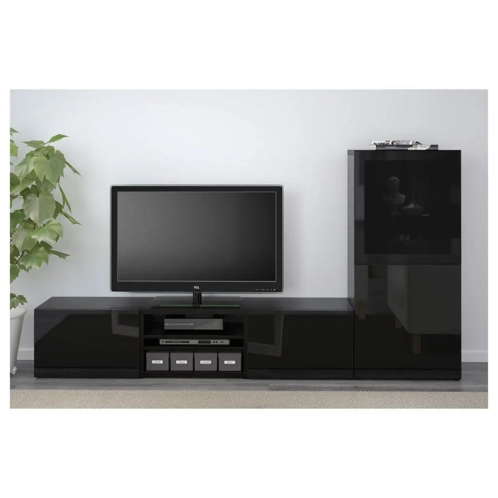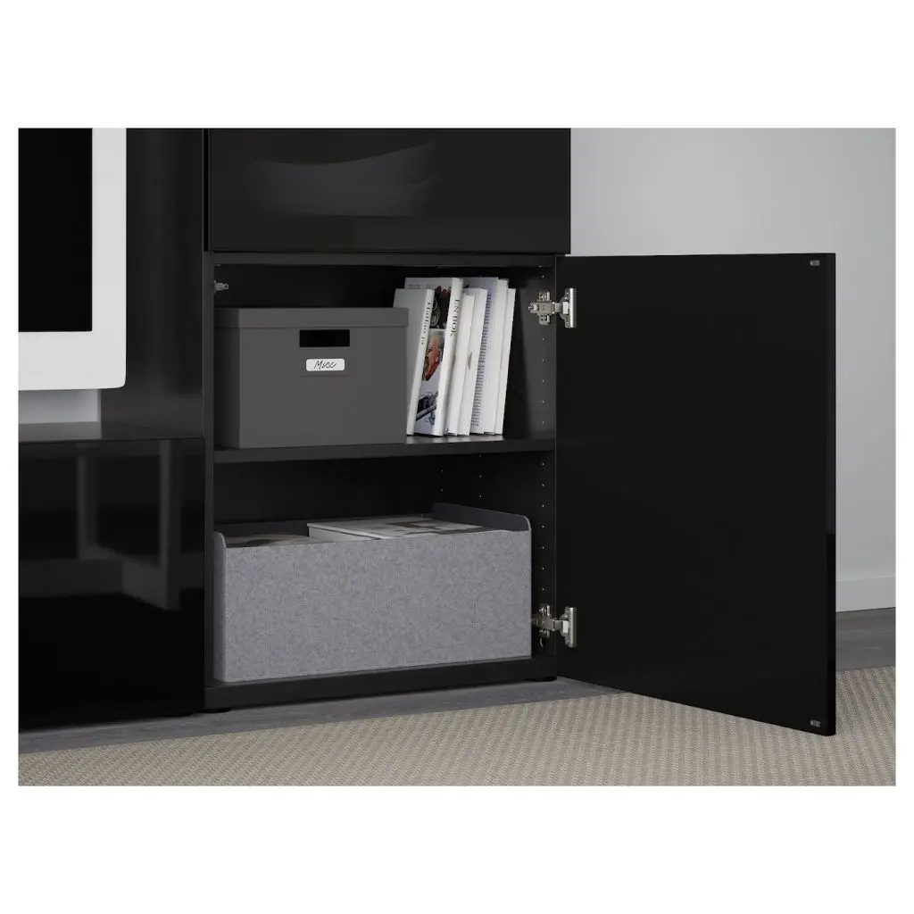 Благодаря доводчикам ящики закрываются плавно и бесшумно.Благодаря нескольким отверстиям на задней панели тумбы под ТВ провода от телевизора и других устройств всегда будут под рукой, но не на виду.Два ящика и полки за дверцами обеспечат достаточно места для хранения.Съемные полки позволяют регулировать пространство.Специальное отверстие в верхней панели обеспечит удобное и компактное размещение проводов.Эту мебель необходимо крепить к стене с помощью прилагаемого стенного крепежа.Будьте осторожны при обращении с закаленным стеклом! Из-за поврежденных краев и царапин на поверхности стекло может внезапно разбиться.Макс. нагрузка на верхнюю панель этой тумбы под ТВ: 50 кг.Для разных стен требуются различные крепежные приспособления. Подберите подходящие для ваших стен шурупы, дюбели, саморезы и т. п. (не прилагаются).Максимальная нагрузка на закрепленный на стене модуль зависит от материала стены.Внутренние элементы для организации хранения в модулях БЕСТО продаются отдельно.Если вы выберете функцию плавного закрывания, рекомендуем дополнить фасады ручками, чтобы открывать ящики/шкафы было удобнее.Дизайнер