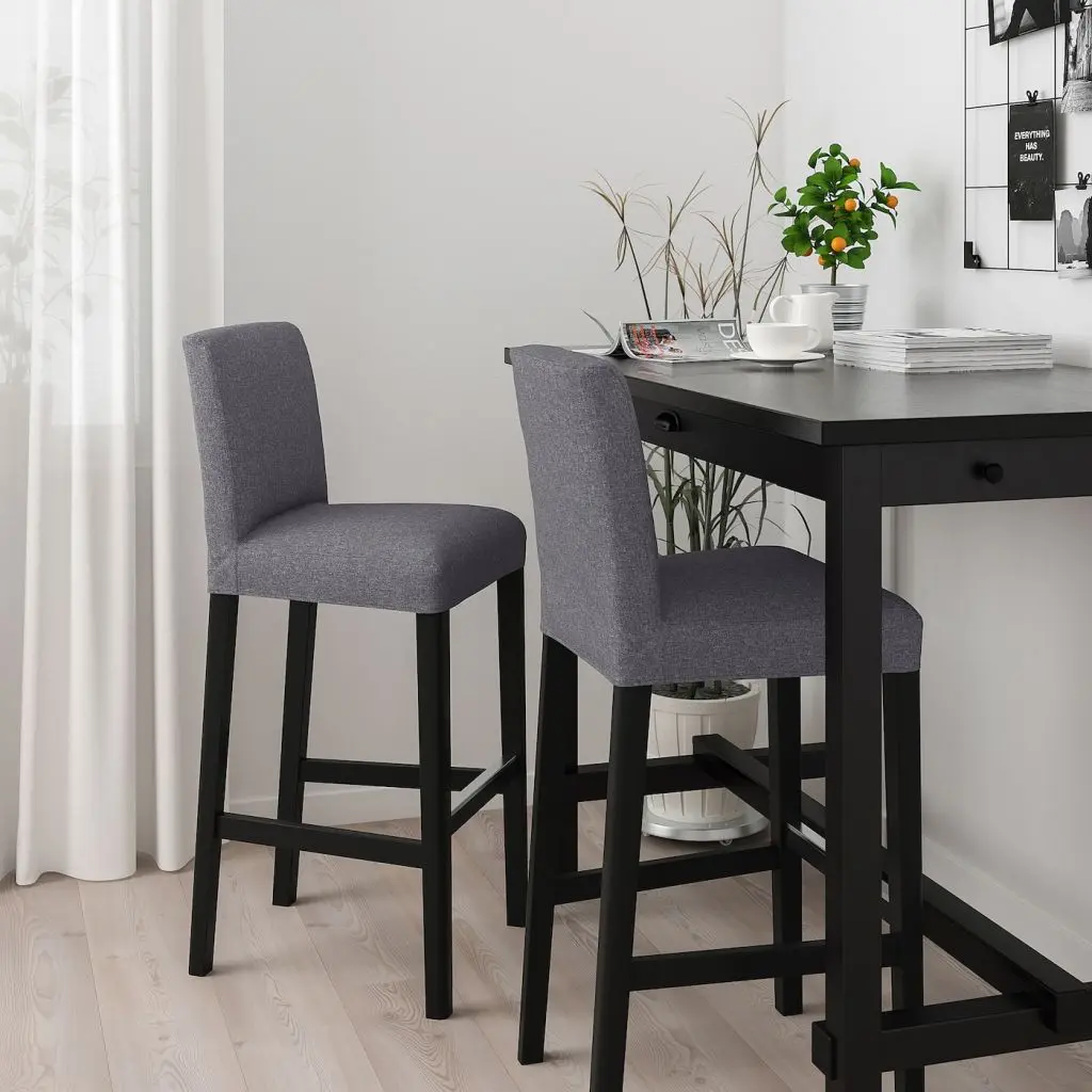Барные табуреты серии БЕРГМУНД обеспечивают мягкость и комфорт. Есть разные чехлы, которые можно стирать, что особенно важно, если вы планируете шумную вечеринку.