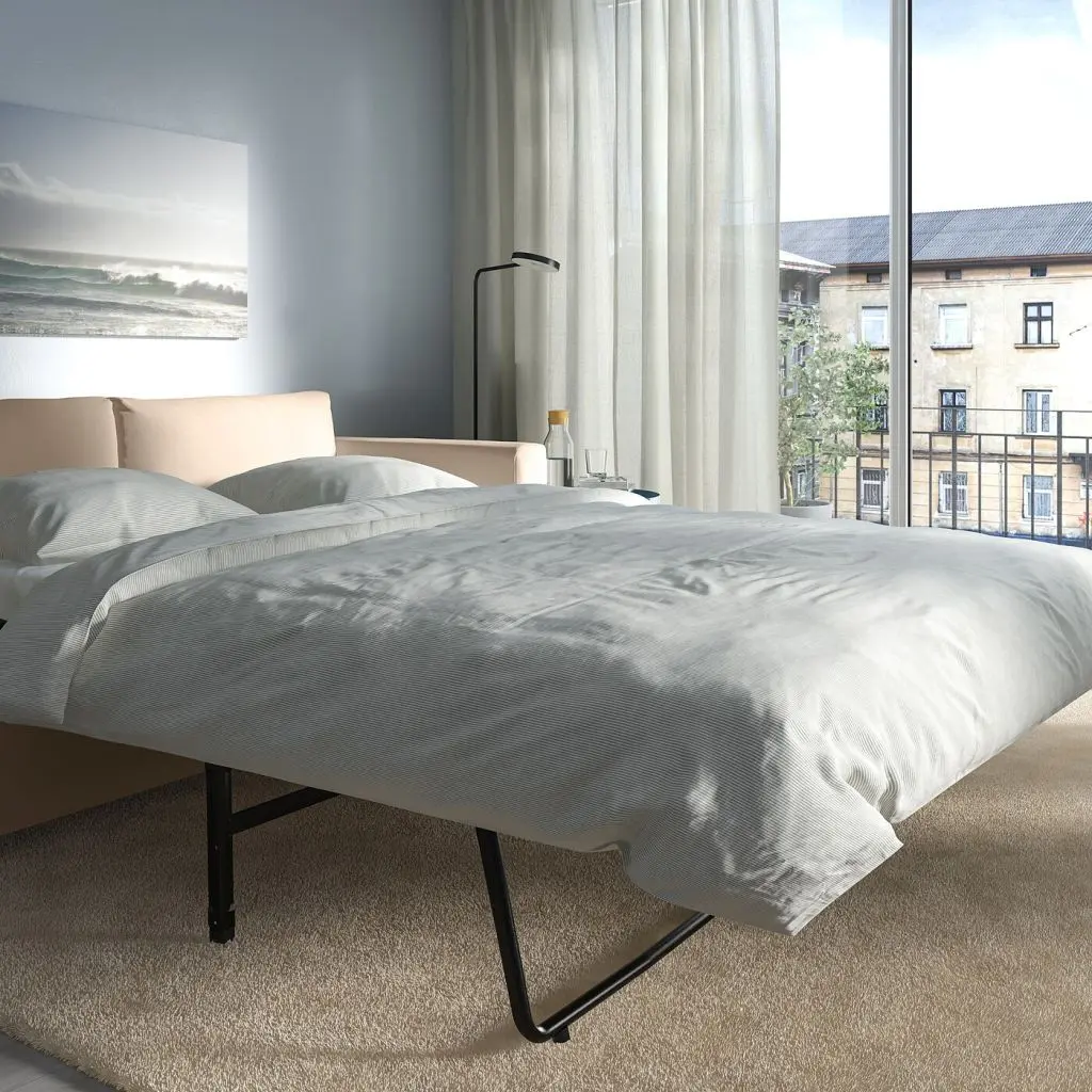 Секции ВИМЛЕ можно по-разному комбинировать, чтобы создать диван, максимально соответствующий вашим потребностям и возможностям помещения. В этой комбинации есть диван-кровать с комфортным высоким матрасом.