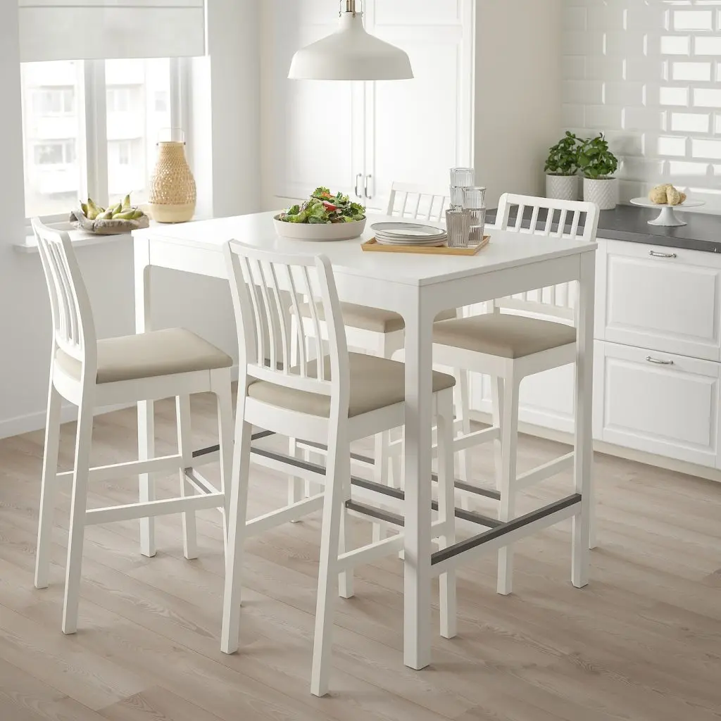 Просторная барная столешница обеспечивает много места для сервировки и общения, а также для работы.Отделка и дизайн барного стола позволяют использовать его и в кухне, и в гостиной.Мы все проверили! Поверхность столешницы выдержит воздействие жидкостей и тепла, а также будет устойчива к пятнам, жиру, царапинам и ударам, чтобы долгие годы выдерживать все испытания повседневного использования.Прекрасно сочетается с барными стульями этой серии.Съемный чехол легко содержать в чистоте, так как его можно стирать в машине.Можно дополнить наклейками на мебельные ножки ФИКСА; защищают пол от царапин.Барный стол (длина 120 см, ширина 80 см, высота 105 см). Барный стул (ширина 45 см, глубина 52 см, высота 114 см, высота сиденья 75 см, ширина сиденья 45 см, глубина сиденья 39 см).