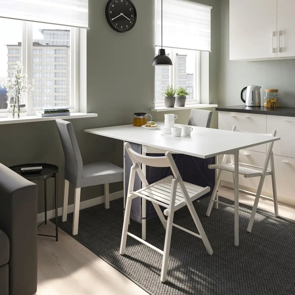 Во вместительном отделении под столешницей достаточно места даже для двух складных стульев (например, ТЕРЬЕ, ГУНДЕ и НИССЕ), которые вы сможете быстро достать, если неожиданно нагрянут гости.