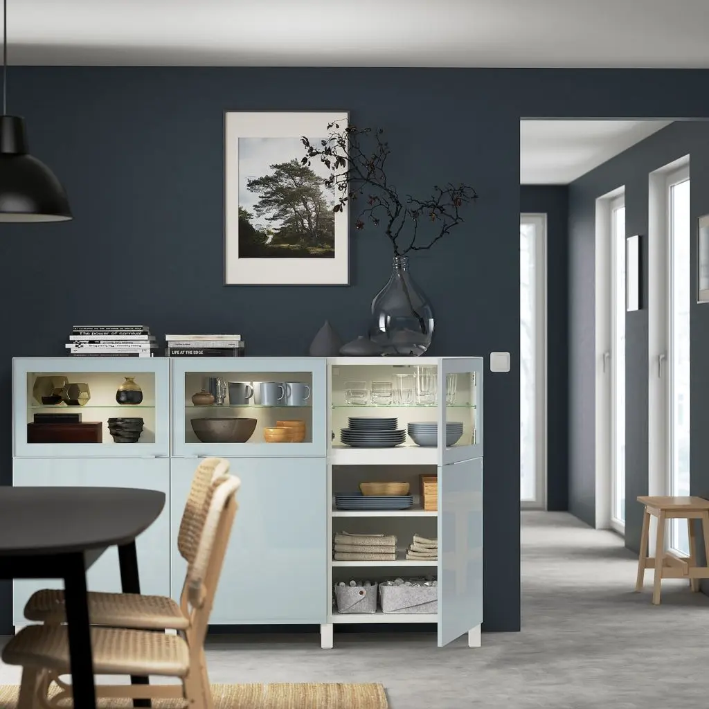 Стеклянные дверцы позволяют продемонстрировать содержимое шкафа, защищая его от пыли.