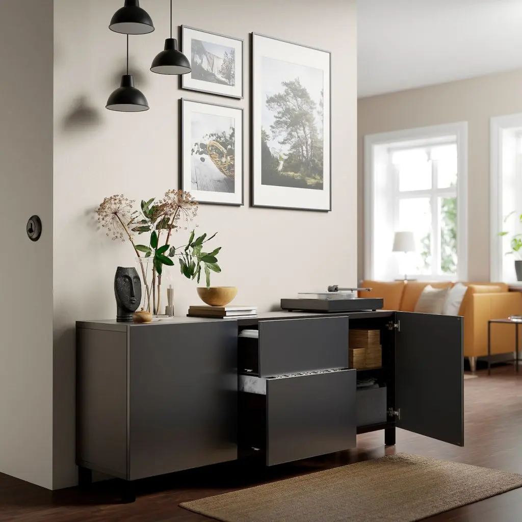 Конструкция петель позволяет отрегулировать и выровнять дверцу по вертикали и по горизонтали. Ящики со встроенным нажимным механизмом открываются легким нажатием.Съемные полки позволяют регулировать пространство.Два ящика и полки за дверцами обеспечат достаточно места для хранения.Организуйте и оптимизируйте систему для хранения БЕСТО, используя подходящие коробки и вставки.Эта комбинация состоит из нескольких частей. Используйте верхнюю панель БЕСТО, чтобы закрыть соединения между каркасами. Продается отдельно.Если вы выберете функцию плавного закрывания, рекомендуем дополнить фасады ручками, чтобы открывать ящики/шкафы было удобнее.Эту мебель необходимо крепить к стене с помощью прилагаемого стенного крепежа.Для разных стен требуются различные крепежные приспособления. Подберите подходящие для ваших стен шурупы, дюбели, саморезы и т. п. (не прилагаются).