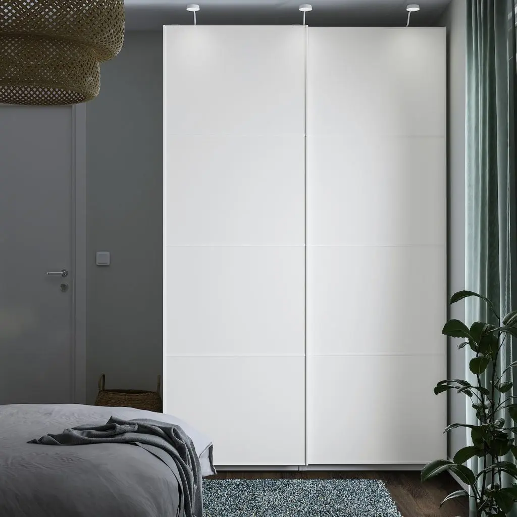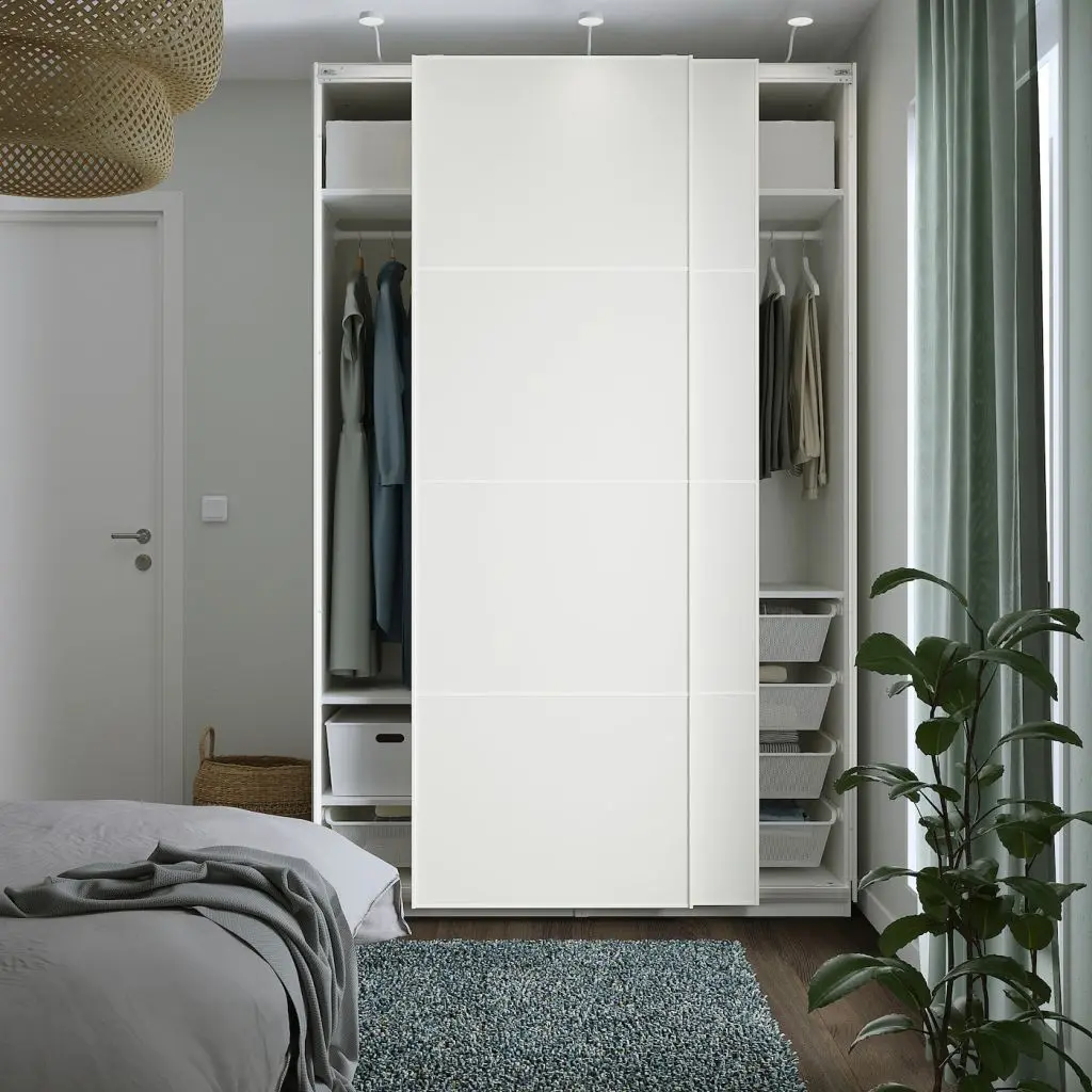 Для раздвижных дверей не нужны ручки, что придает дизайну гардероба лаконичный облик, позволяя сочетать его с мебелью в разных стилях.