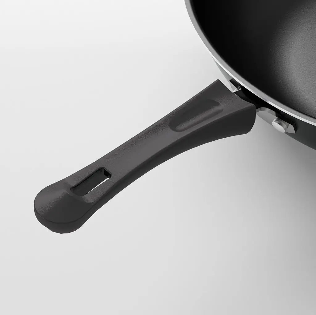 Благодаря небольшому весу посуду легко поднять даже с пищей.Легко поднимать и переносить благодаря двум ручкам.Благодаря наклонным стенкам пища попадает на дно, которое нагревается сильнее; для получения хрустящей корочки необходимо тщательно перемешивать.Сделано из алюминия. Этот материал равномерно распределяет тепло и быстро реагирует на изменение температуры, поэтому пища не пригорает и не прилипает к поверхности.Благодаря антипригарному покрытию пища не подгорает и не прилипает.Вымойте изделие перед первым использованием.
