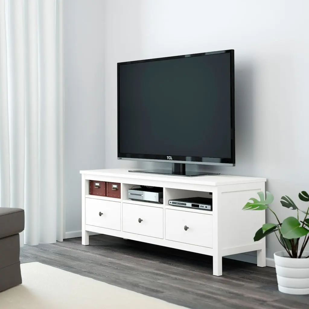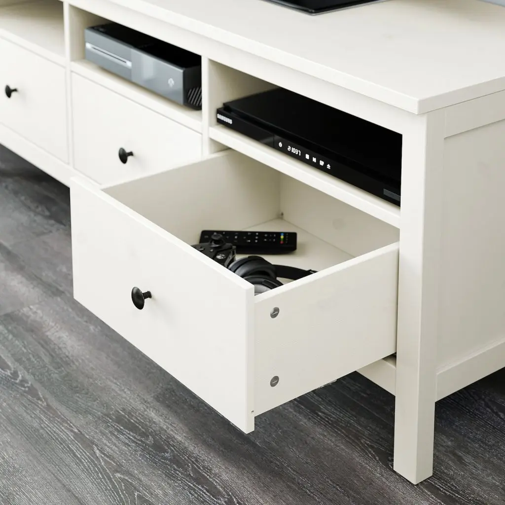 Массив дерева.Открытые отделения для DVD-плеера и т.п.Большие ящики обеспечат удобное хранение аксессуаров и порядок.Ручки прилагаются.Комбинируется с другой мебелью из серии ХЕМНЭС.Стоящая на полу тумба под ТВ должна быть закреплена к стене с помощью прилагающего стенного крепежа.Для разных стен требуются различные крепежные приспособления. Подберите подходящие для ваших стен шурупы, дюбели, саморезы и т. п. (не прилагаются).Дизайнер