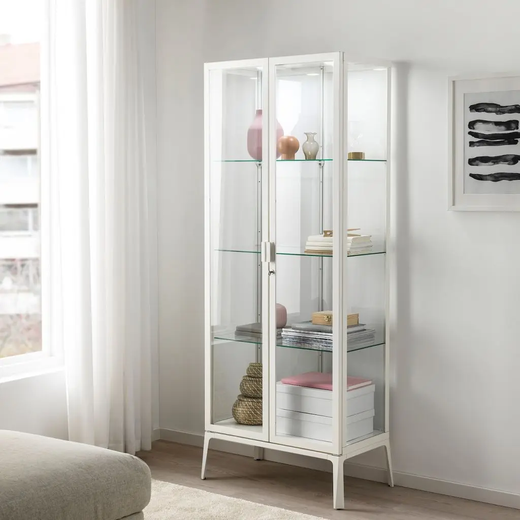 Шкаф-витрина позволяет продемонстрировать ваши бокалы и любимые безделушки, защищая их от пыли.Съемные стеклянные полки позволяют регулировать пространство.Замок обеспечит сохранность содержимого, а также безопасность детей.Можно легко дополнить шкаф-витрину встроенной подсветкой благодаря отверстию для проводов в верхней панели.Благодаря стеклянным полкам свет проходит через весь шкаф-витрину.Замок и 2 ключа прилагаются.3 съемные полки прилагаются.Можно установить подсветку, продается отдельно.Мы рекомендуем прикреплять мебель к стене с помощью прилагаемого крепежа безопасности. Это предотвратит опрокидывание мебели, если ребенок решит на нее забраться или повиснет на ней.Будьте осторожны при обращении со стеклом! Из-за поврежденных краев и царапин на поверхности стекло может внезапно треснуть и/или разбиться. Избегайте ударов сбоку, там стекло наиболее уязвимо.Для разных стен требуются различные крепежные приспособления. Подберите подходящие для ваших стен шурупы, дюбели, саморезы и т. п. (не прилагаются).Сборку должны производить два человека.Дизайнер