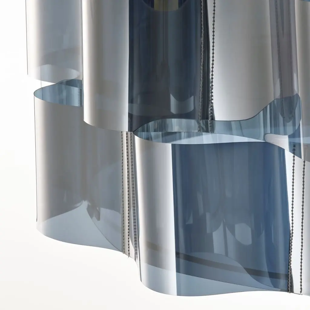 Волнистая форма и блестящая серебристая поверхность делают этот абажур особенно привлекательным. Хромированная внутренняя отделка создает игру света и мягкое направленное вниз освещение.