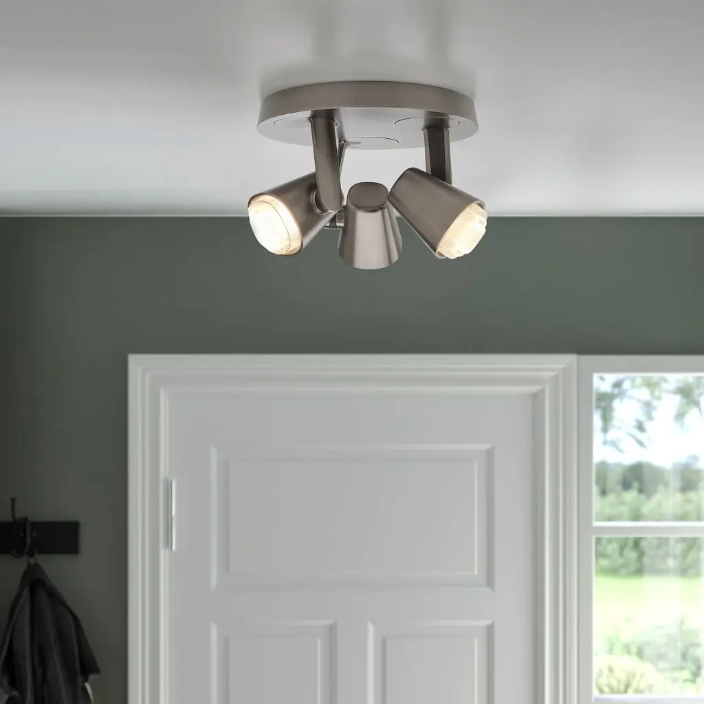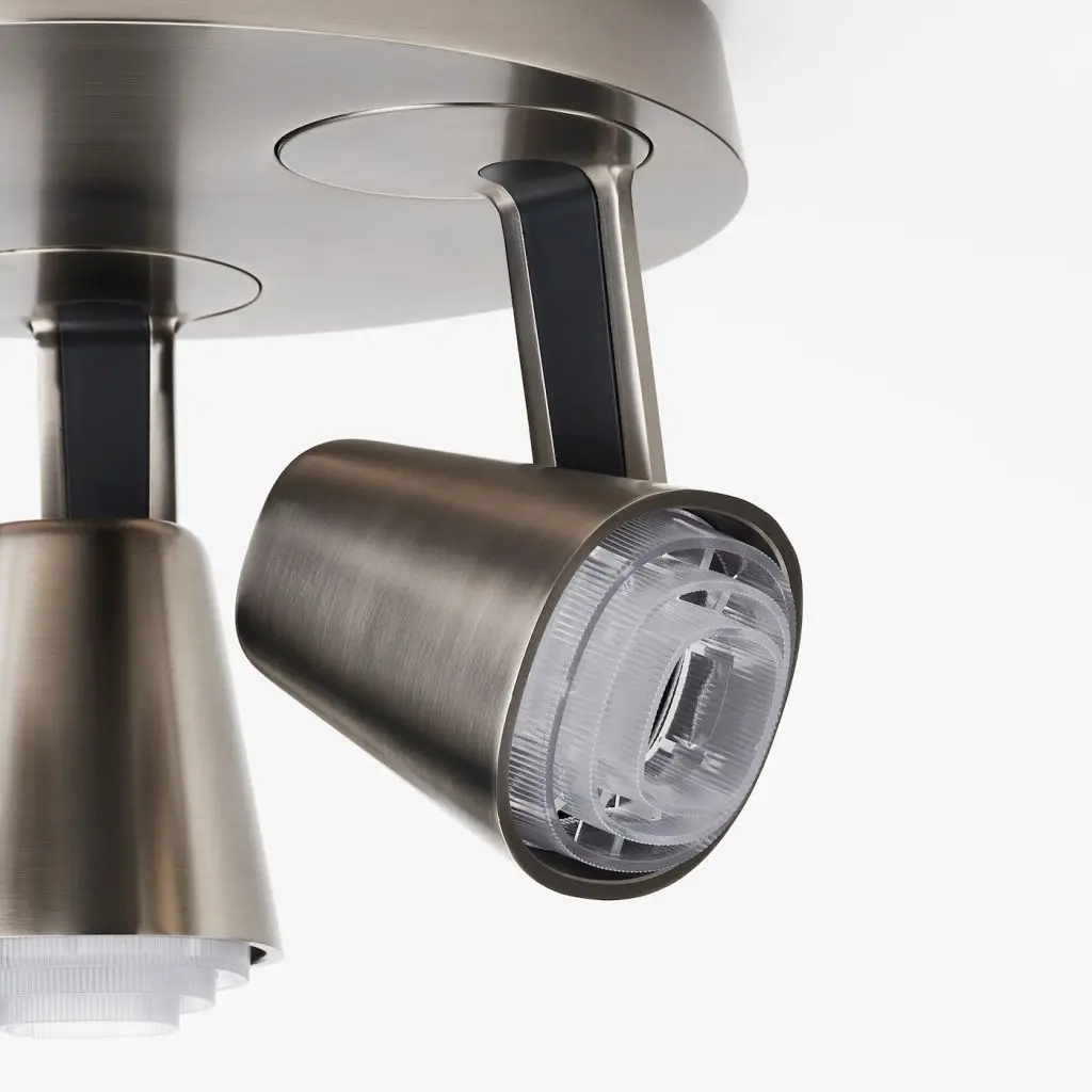 Современный потолочный светильник элегантного дизайна с никелированной поверхностью. Каждый софит поворачивается на 360°. Идеальное решение для прихожей, кухни или любой комнаты, где вам необходим стильный светильник с хорошим освещением.