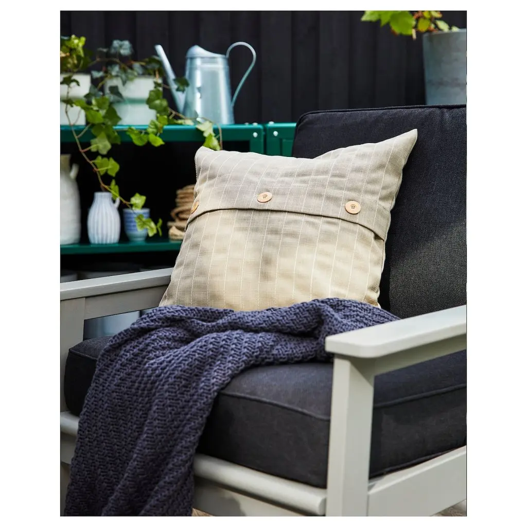Чтобы сделать это кресло максимально комфортным, мы позаботились о просторном сиденье и удобных подлокотниках.Два кресла можно поставить одно на другое. Для этого кресло, которое будет стоять сверху, нужно перевернуть, чтобы его подлокотники опирались на подлокотники нижнего кресла.Благодаря небольшому бортику подушка не соскальзывает с сиденья.Изготовлено из древесины эвкалипта, материала высокого качества, поступающего из ответственно управляемы лесных хозяйств.Массив эвкалипта — прочная твердая древесина, которая идеально подходит для садовой мебели. Высокое содержание масел обеспечивает естественную защиту от воздействия атмосферных осадков и ветра, а также предотвращает пересыхание и развитие плесени.Покрытие серой краской в три слоя придает поверхности еще большую прочность для использования на улице и позволяет мебели органично вписаться в окружающее пространство.Пластиковые ножки защищают мебель от соприкосновения с влажной поверхностью.Вы можете обустроить пространство для отдыха на террасе или в саду, дополнив кресло 2-местным диваном и садовым столиком БОНДХОЛЬМЕН.Подушки продаются отдельно.Можно дополнить подушками ЙЭРПОН/ДУВХОЛЬМЕН, ФРЁСЁН/ДУВХОЛЬМЕН, КУДДАРНА или ХОЛЛО.Можно дополнить другими товарами серии БОНДХОЛЬМЕН.Рекомендовано для использования на улице.Дизайнер