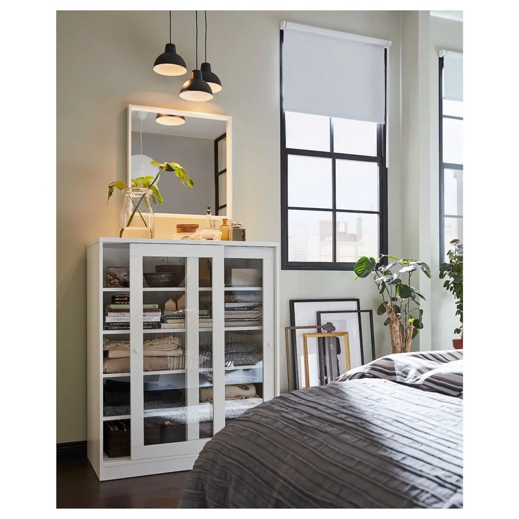 За стеклянными раздвижными дверцами этого шкафа ваши любимые вещи будут всегда на виду и при этом надежно защищены от пыли. Шкаф СЮВДЕ прекрасно дополняет комод с 6 ящиками МАЛЬМ.