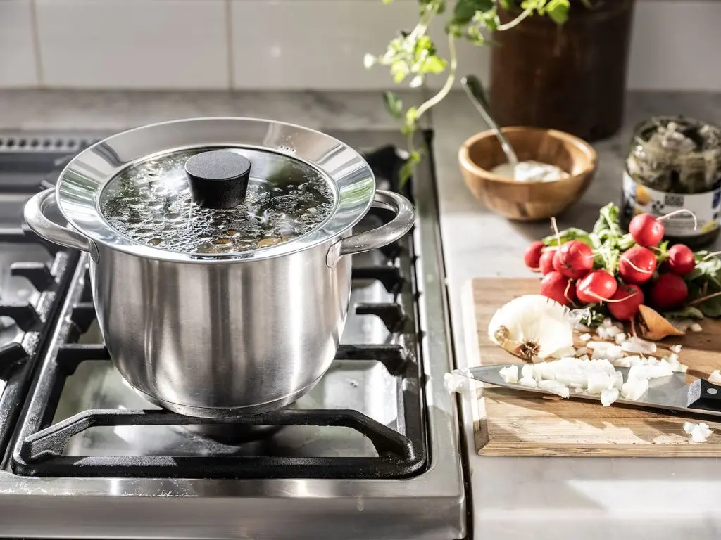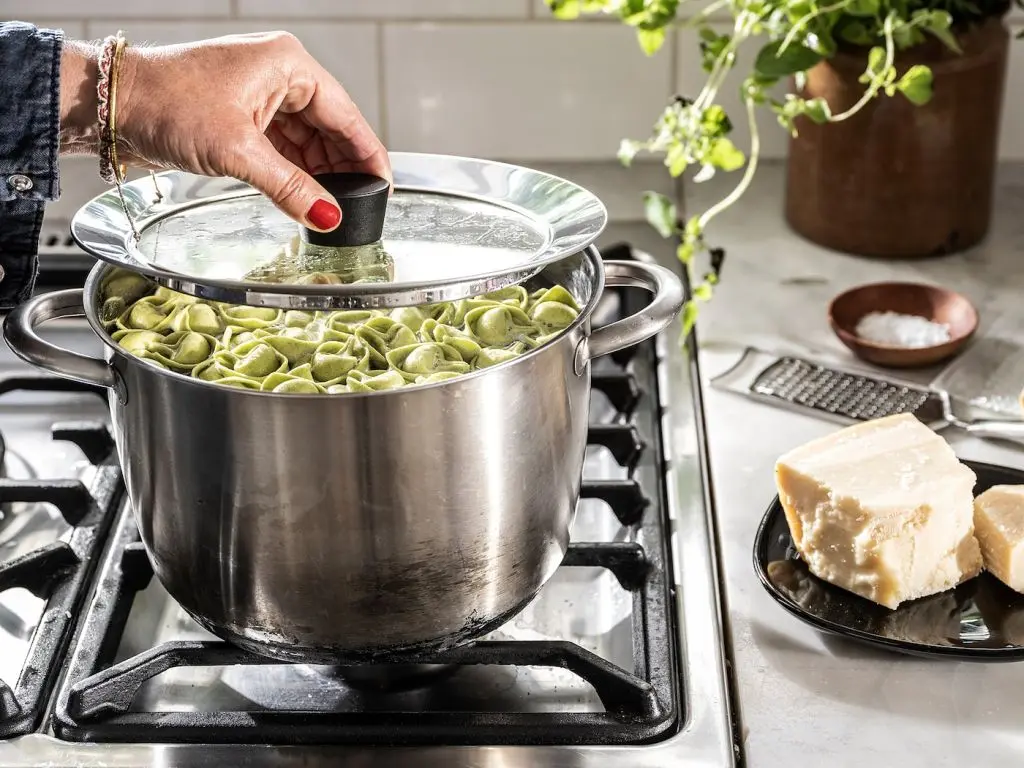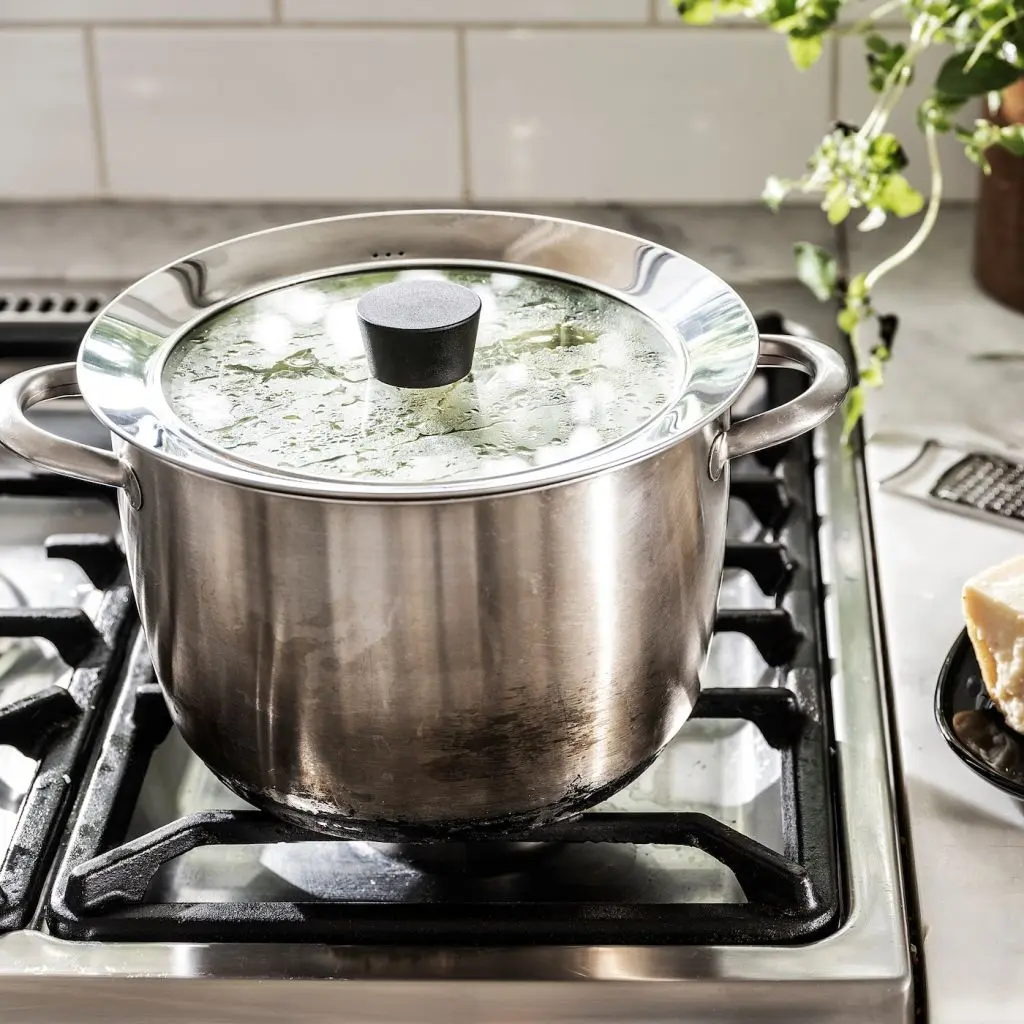 Благодаря широкому металлическому ободку подходит для кастрюль объемом и два, и три литра.