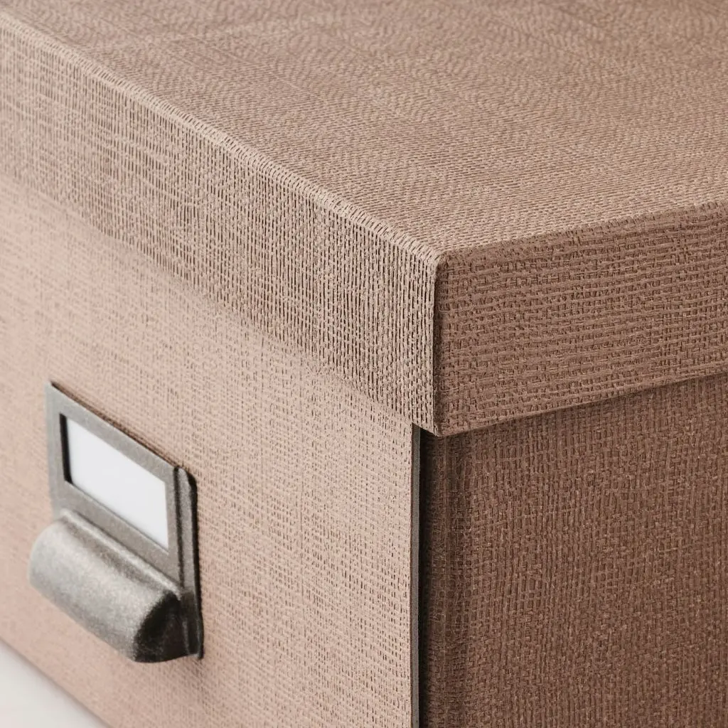 В этой коробке можно хранить что угодно — от документов и игр до украшений и аксессуаров. Металлическое окошко для ярлыка и поверхность, стилизованная под тканевую, делают коробку не только удобной, но и красивой.