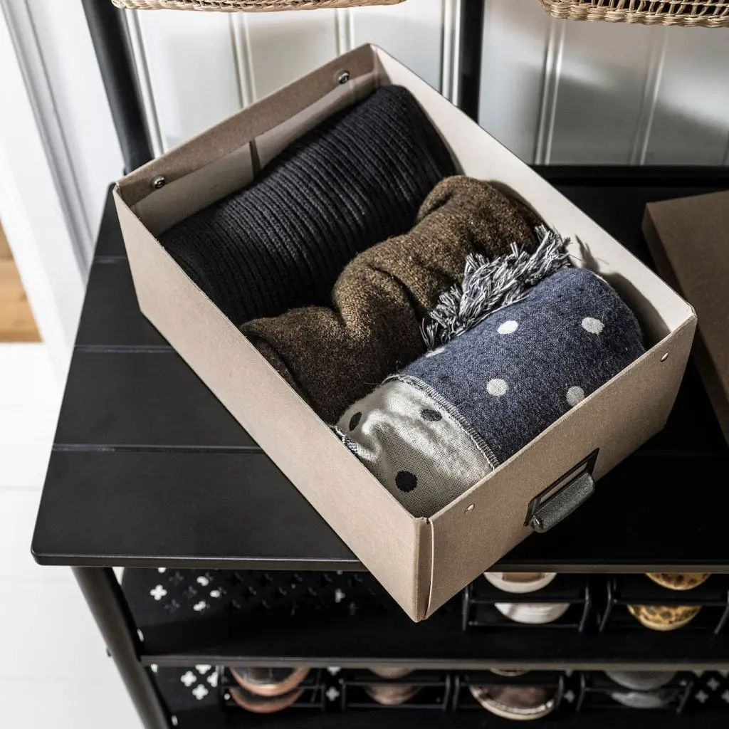 Коробка такого размера подойдет для хранения самых разных вещей: от документов и разных аксессуаров, до одежды и обуви.Подходит для систем хранения ХАУГА и ИДАНЭС, а также любой другой мебели с полками глубиной не менее 25 см.Ручку и окошко с ярлычком можно расположить на любой боковой стороне коробки.С окошком для ярлыка: можно обозначить содержимое, чтобы не тратить время на поиски.Дизайнер