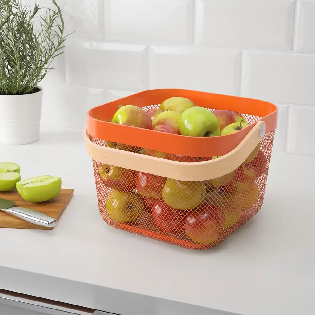 Подходит для хранения овощей и фруктов, которые лучше не убирать в холодильник. Стальная сетка хорошо пропускает воздух, сохраняя продукты свежими. Корзину также можно использовать для хранения вещей в прихожей, спальне и даже домашнем офисе.