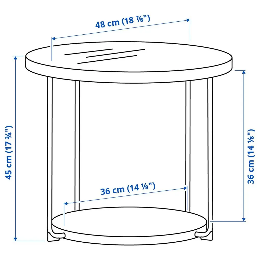 Круглая форма и сочетание разных материалов создают динамичный, но сбалансированный облик. Используйте ФРЁТОРП в качестве журнального или придиванного столика и смело комбинируйте разные размеры, чтобы создать решение большей площади.