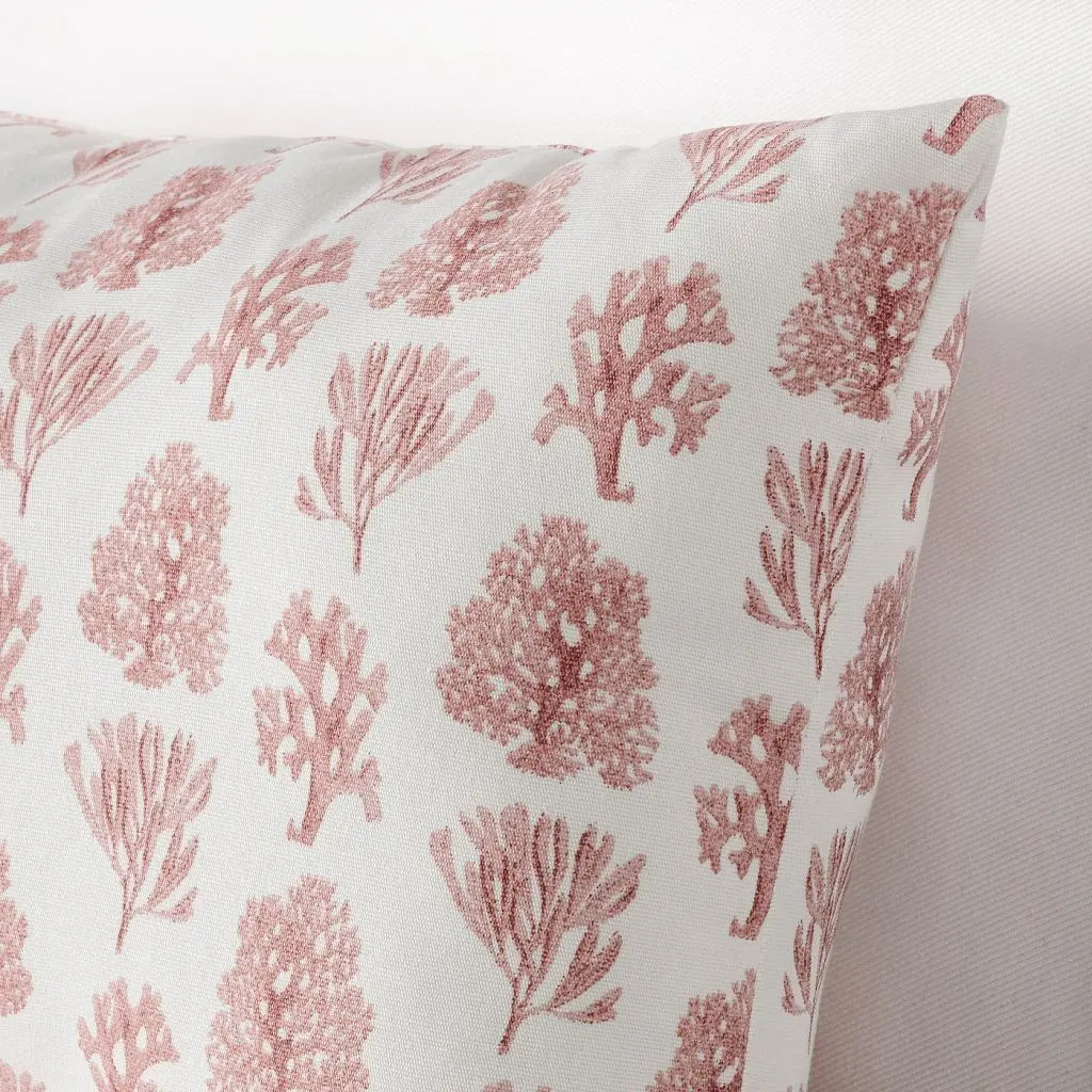 Хлопковая подушка с орнаментом в виде кораллов и раковин. Позволяет с легкостью задать морскую тему в оформлении интерьера. Мягкий и упругий наполнитель сделан из переработанного полиэстера.