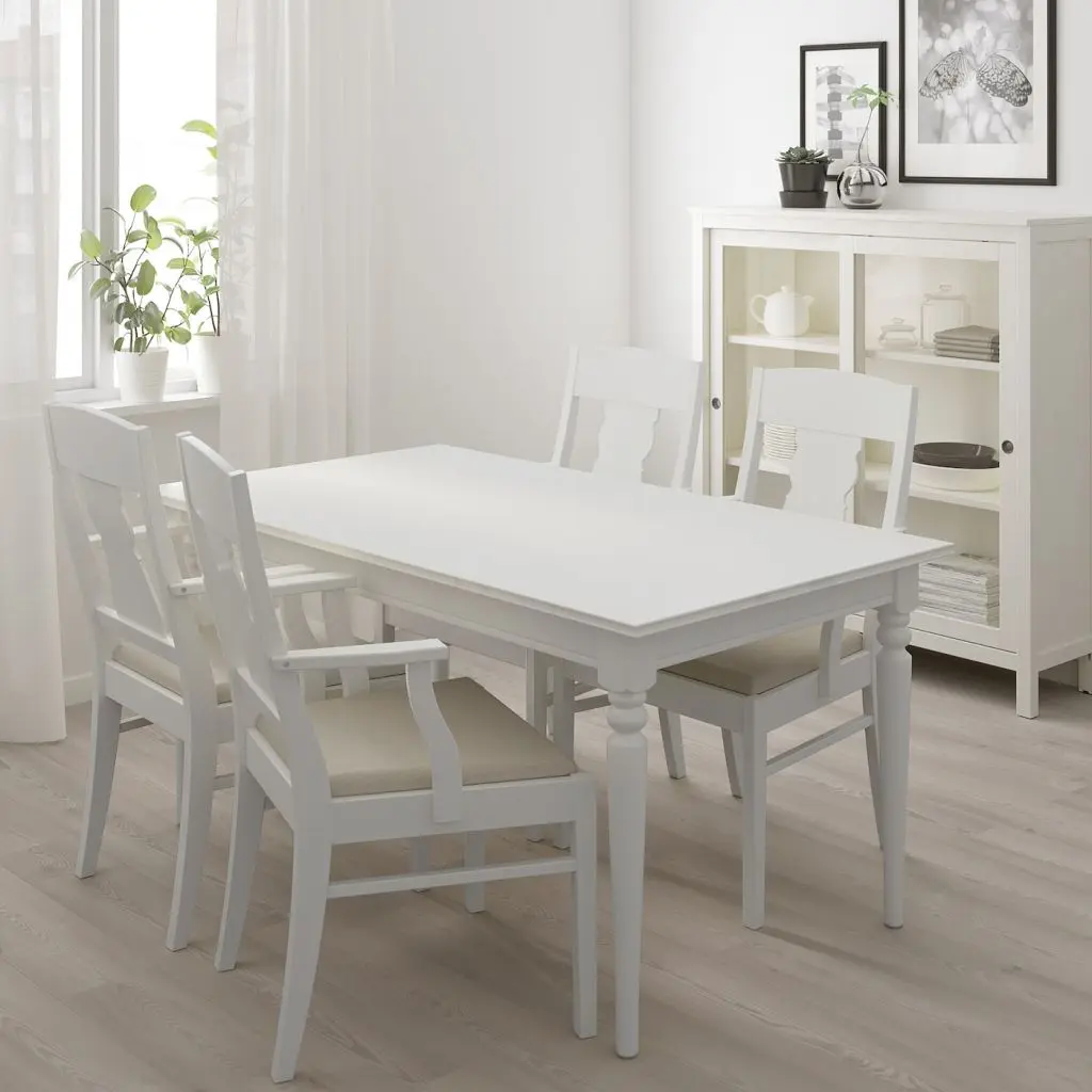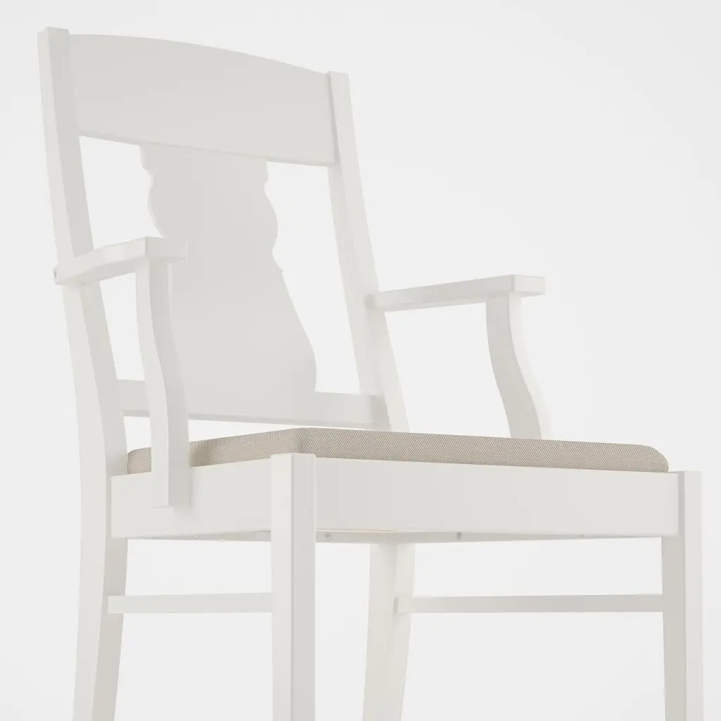 Раскладной обеденный стол на 4-6 человек; 1 вкладная доска позволяет регулировать размер стола.1 вкладная доска прилагается.Никаких швов на поверхности столешницы, когда стол не разложен.Вкладную доску удобно хранить под столешницей.Стол раздвигается вместе с ножками, обеспечивая достаточно места для стульев вокруг стола.Благодаря удобным подлокотникам оптимальной длины и высоты, а также спинке, расположенной под комфортным углом, и мягкому сиденью эта мебель располагает к долгим неспешным застольям.Длины подлокотников достаточно, чтобы вам было удобно на них опираться, но при этом они не мешают придвигать кресло вплотную к столу.Стул можно задвинуть под стол, так он будет занимать меньше места, когда не используется.Резная деталь спинки перекликается с формой ножек стола и подчеркивает традиционный дизайн кресла.На 4-6 человек.Для обеспечения максимального качества при необходимости подтягивайте шурупы.Дизайнер
