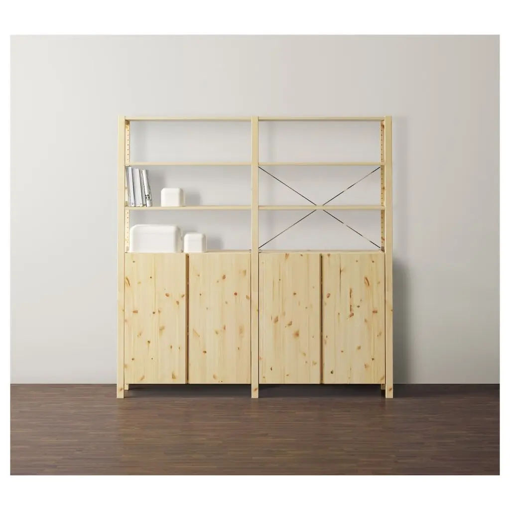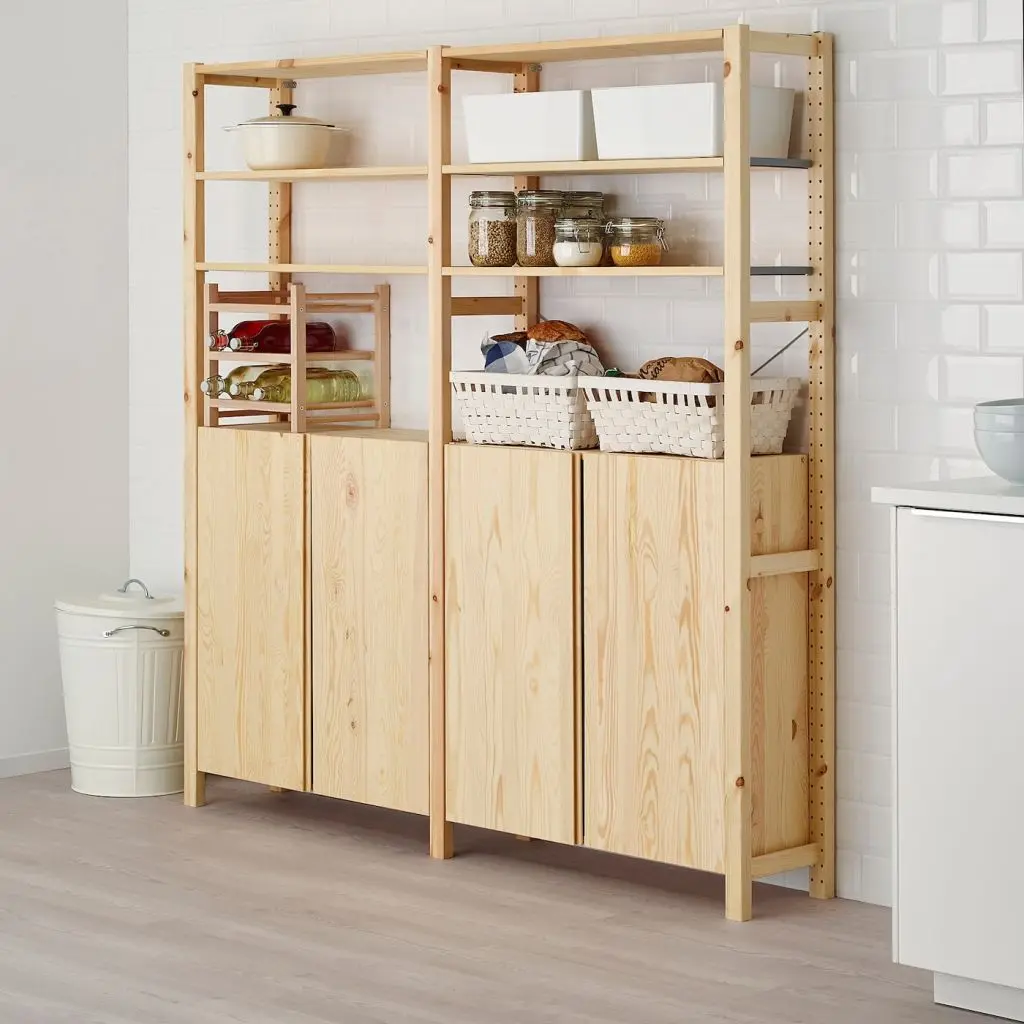 Необработанный массив дерева – прочный натуральный материал, который можно покрыть маслом или воском для повышения износостойкости.Полки можно устанавливать на разном уровне в соответствии с потребностями хранения.Придайте мебели индивидуальную выразительность, обработав ее морилкой или покрасив в свой любимый цвет.Массив сосны – натуральный материал, который со временем выглядит только лучше.Эту мебель необходимо крепить к стене с помощью прилагаемого стенного крепежа.Для разных стен требуются различные крепежные приспособления. Подберите подходящие для ваших стен шурупы, дюбели, саморезы и т. п. (не прилагаются).Для устойчивости дополните каждую вторую секцию крестовиной.Дизайнер