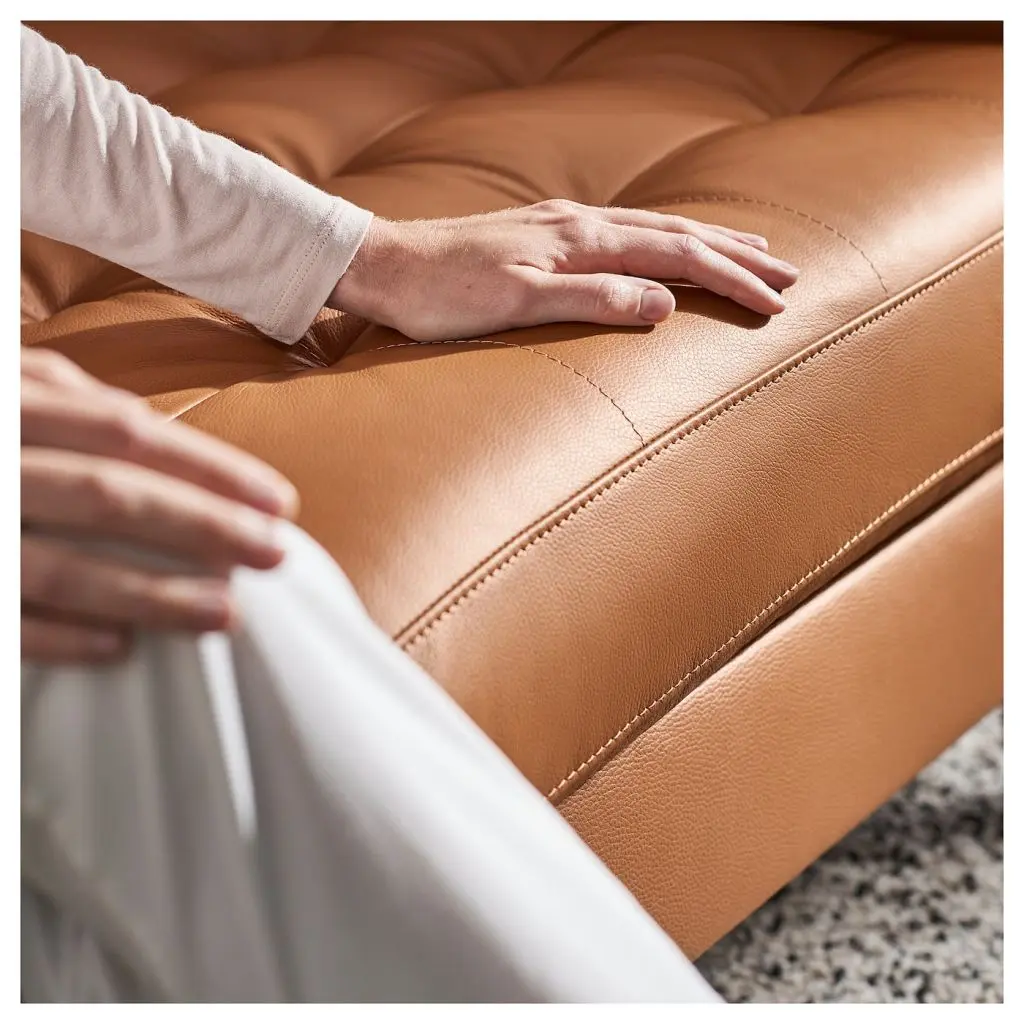 Контактные поверхности обтянуты прокрашенной кожей толщиной 1,2 мм, мягкой и эластичной.Подушки сиденья с наполнителем из высокоэластичного пенополиуретана и ваты из полиэстерного волокна обеспечивают особый комфорт.Внешние поверхности обиты тканью с прочным покрытием, которая по виду и на ощупь похожа на кожу.Бесплатно 10 лет гарантии. Подробнее об условиях гарантии – в гарантийной брошюре.Чехлы на ножки соответствующие чехлу прилагаются.Чехол имеет уровень светостойкости (способность противостоять выцветанию) 5 по шкале от 1 до 8. В соответствии с отраслевыми стандартами материал с уровнем светостойкости 4 или выше подходит для домашнего использования.