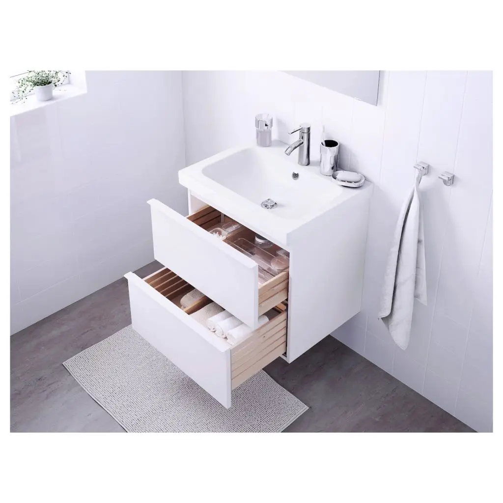 Отличное соотношение цены и качества и гарантия на срок не менее 10 лет ежедневного использования. Ознакомьтесь с условиями в гарантийной брошюре.Матовая поверхность шкафа под раковину создает располагающую атмосферу.Каждый раз открывая кран, вы экономите воду и энергию, так как аэратор предотвращает излишний расход воды.Смеситель и выпуск прилагаются.Дизайнер