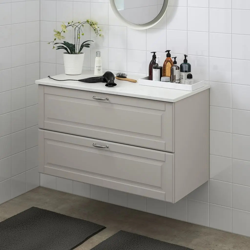 Отличное соотношение цены и качества и гарантия на срок не менее 10 лет ежедневного использования. Ознакомьтесь с условиями в гарантийной брошюре.Матовая поверхность шкафа под раковину создает располагающую атмосферу.Ножки ГОДМОРГОН продаются отдельно.Ручки прилагаются.Ламинат чувствителен к воздействию едких химикатов, например средств для удаления накипи, хлора и ацетона. При попадании таких средств на ламинат их необходимо сразу удалить. Для ухода можно использовать обычные моющие средства.Убедитесь, что материалы, из которых сделаны стены ванной комнаты, выдержат вес мебели. Если у вас возникли сомнения по поводу установки, обратитесь к специалисту. Для разных стен требуются различные шурупы, дюбели, саморезы и т. п. (не прилагаются).Эту мебель необходимо крепить к стене с помощью прилагаемого стенного крепежа.Если вы сомневаетесь в прочности стен в ванной, мы рекомендуем использовать ножки.Если вы сомневаетесь в прочности стен в ванной, мы рекомендуем использовать ножки.Дизайнер