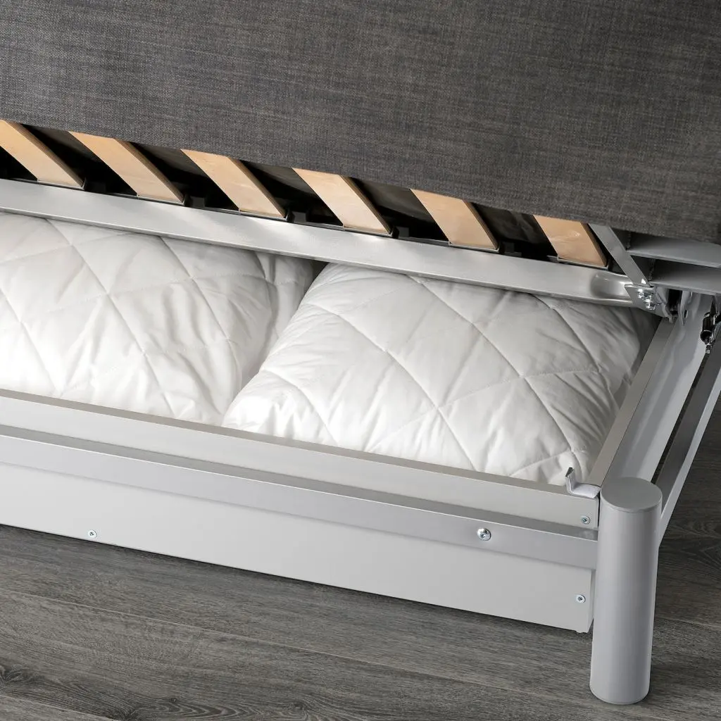 Легко превращается в двуспальную кровать.Не нужно снимать чехол, когда вы раскладываете и складываете диван.Поставьте ящик под кровать и храните в нем постельные принадлежности для 2 человек.Дизайнер