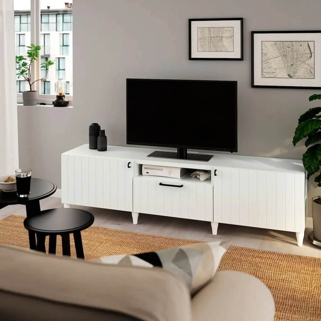 Тумбы под ТВ БЕСТО — это современный дизайн и комбинация практичных решений: много места для хранения и отсутствие путаницы в проводах, которые обычно создают ощущение беспорядка и собирают пыль.