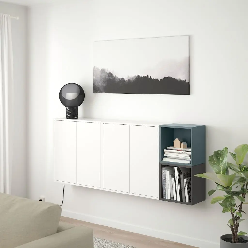 Комбинируйте открытое и закрытое хранение в зависимости от потребностей.Дверца со встроенным нажимным механизмом открывается легким нажатием.4 съемные полки позволяют адаптировать пространство в соответствии с потребностями хранения, одна несъемная полка обеспечивает устойчивость.Накладные шины ЭКЕТ для фиксации к стене прилагаются.Для разных стен требуются различные крепежные приспособления. Подберите подходящие для ваших стен шурупы, дюбели, саморезы и т. п. (не прилагаются).Максимальная нагрузка на подвесной шкаф зависит от материала стены.Дизайнер