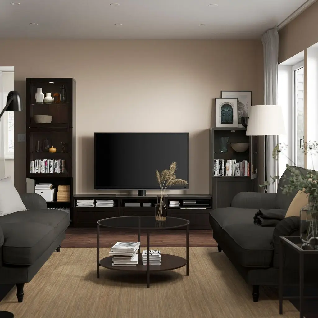 Тумба для телевизора БЕСТО может использоваться для телевизора и всех необходимых гаджетов. Открытые полки продемонстрируют ваши любимые вещи, а в закрытых вы сможете спрятать то, что хотите скрыть от посторонних глаз.