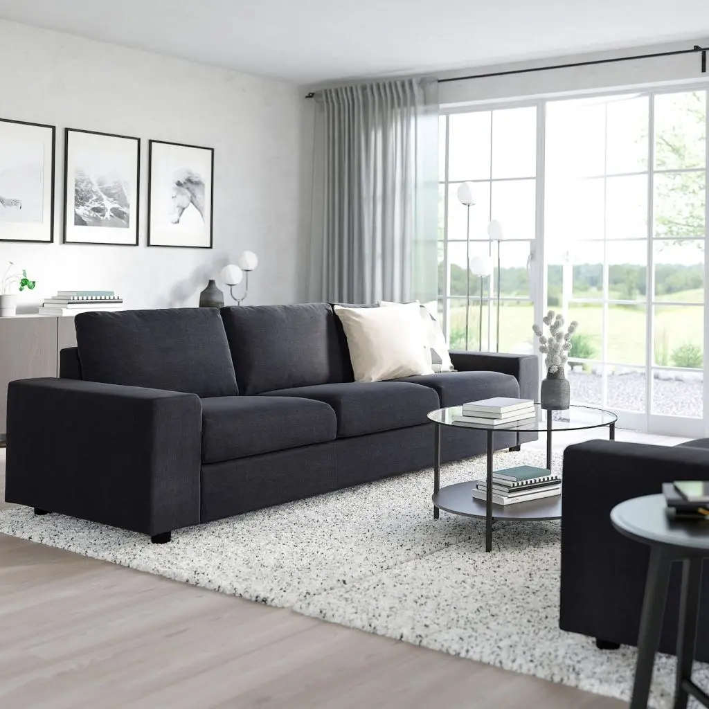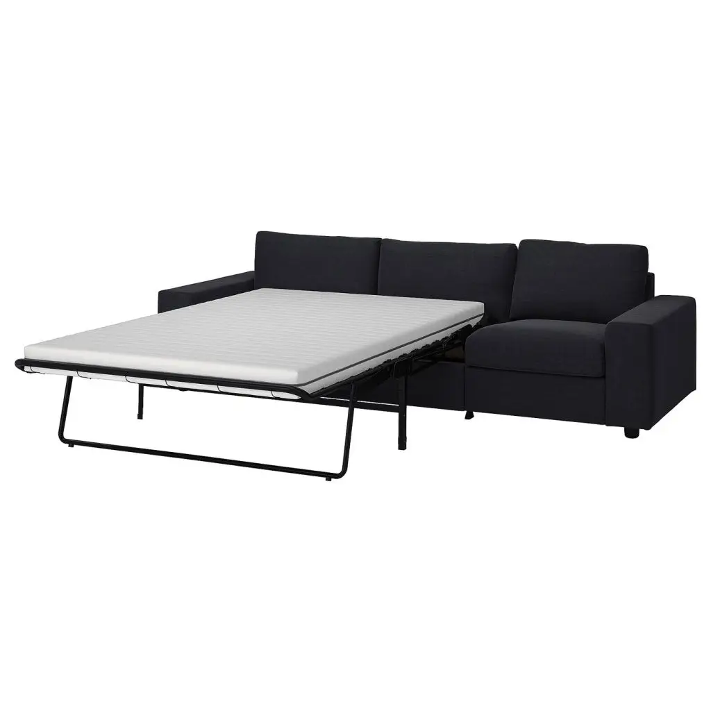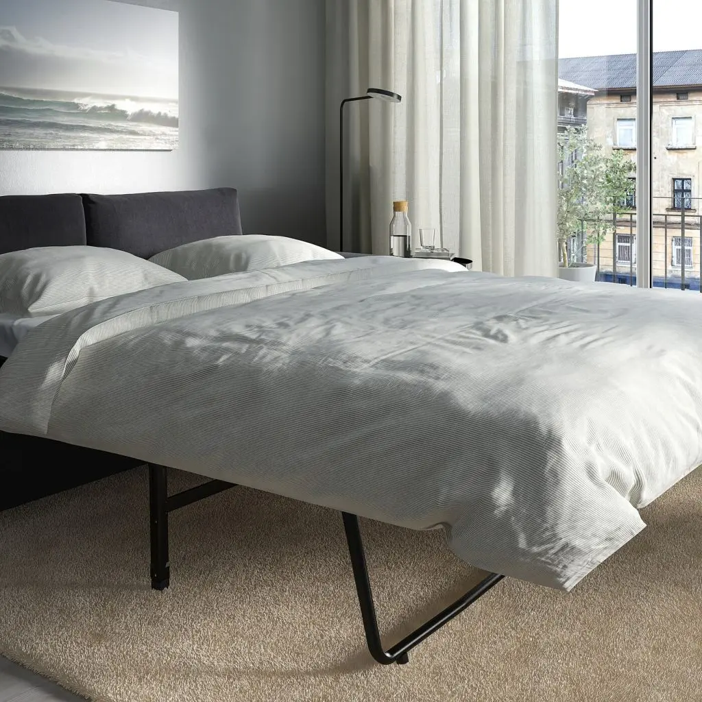 Секции ВИМЛЕ можно по-разному комбинировать, чтобы создать диван, максимально соответствующий вашим потребностям и возможностям помещения. В этой комбинации есть диван-кровать с комфортным высоким матрасом.
