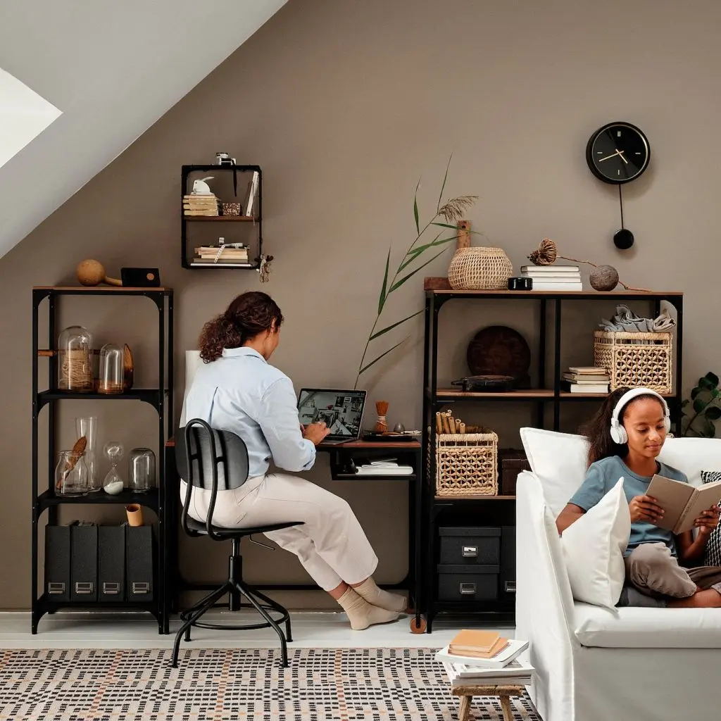 Стол и комбинация для хранения, и рабочий стул черный/сосна,