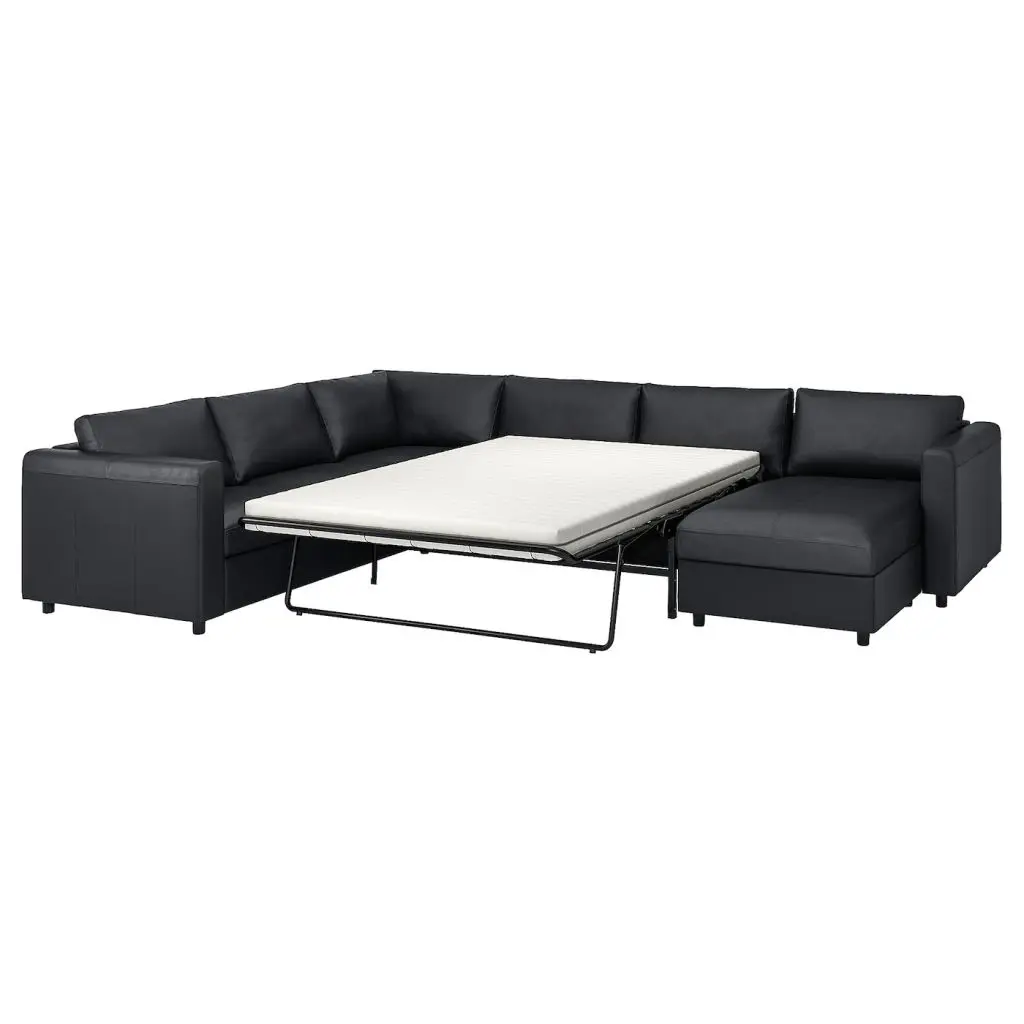 Секции дивана можно комбинировать разными способами, создавая спальное место удобного размера и формы. Если вам потребуется диван побольше, вы всегда можете добавить одну или две секции.Вы можете создать свою собственную идеальную комбинацию с помощью планировщика. Собирайте, разбирайте и снова компануйте, пока не найдете лучший вариант.Уберите подушки сиденья и спинки, вытащите подрамник, и ваш диван быстро превратится в просторную, удобную кровать. Идеальное спальное место для вас или ваших гостей.Диван-кровать оснащен матрасом из высокоэластичного пенополиуретана толщиной 12 см. Матрас обеспечивает поддержку тела и гладкую поверхность без стыков.Благодаря съемному чехлу, который можно стирать в машине, матрас легко содержать в чистоте.Подушки можно использовать для поддержки спины, лежа в кровати.Козетка с отделением для хранения под сиденьем. Крышка автоматически фиксируется в отрытом положении, чтобы вы могли легко достать или убрать нужные вещи.Козетку можно поставить справа или слева от дивана – комбинацию легко изменить.Можно дополнить подголовником ВИМЛЕ, чтобы сделать спинку дивана выше и обеспечить комфортную опору для шеи.Для контактных поверхностей использована мягкая, гладкая и прочная кожаная обивка ГРАНН. Обивка БУМСТАД для остальных поверхностей изготовлена из ткани, которая по внешнему виду и на ощупь неотличима от натуральной кожи.Простой уход – достаточно протереть влажной тканью.Бесплатно 10 лет гарантии. Подробнее об условиях гарантии — в гарантийной брошюре.