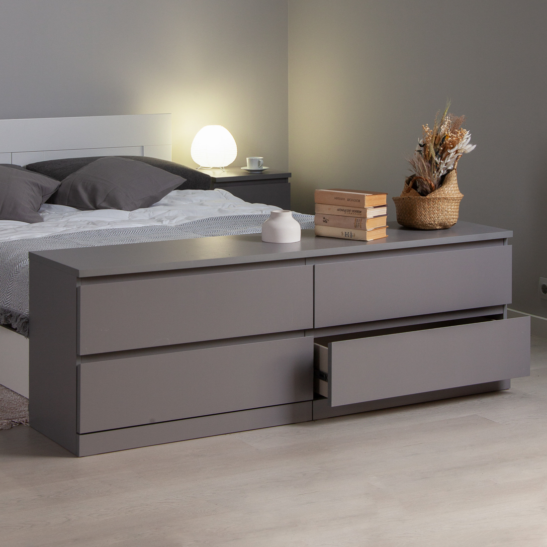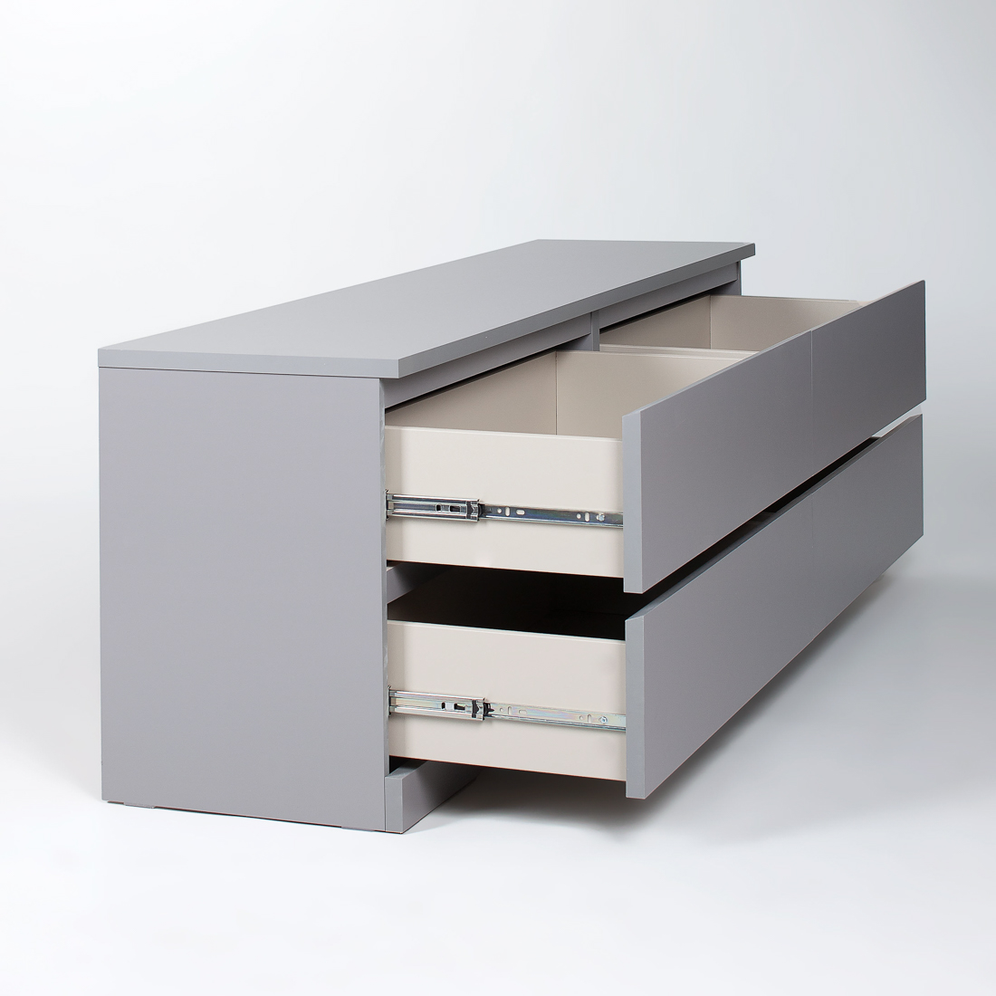Комод Варма 4Д, 1603х400х548, цвет Серый. Стильный удобный комод с 4 выдвижными ящиками. Прекрасно дополнит интерьер и теплую уютную домашнюю атмосферу. Хорошие параметры функциональности (качественные телескопические направляющие, вместительность, удобство использования). Поверхность окрашена экологически безопасными материалами, продолжительное время сохраняет внешний вид. Может использоваться как для хранения вещей, так и в качестве ТВ-тумбы.