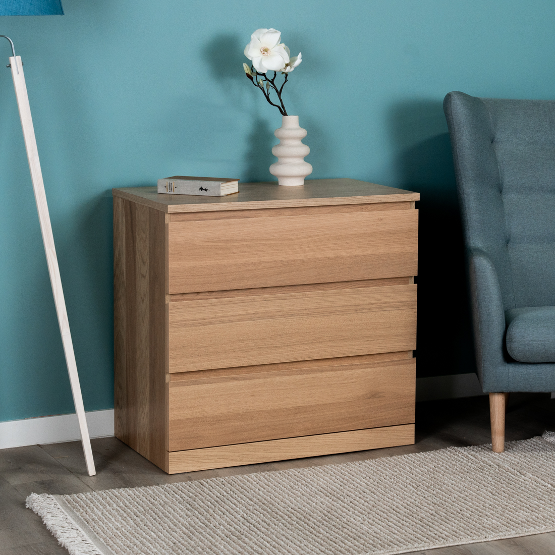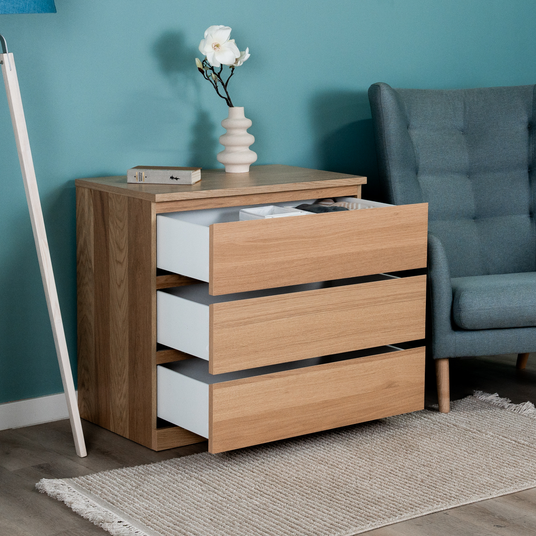 Комод для одежда Варма Прайм на три ящика повышенной вместительности, шпонированный, с направляющими скрытого монтажа, сдоводчикми GTV